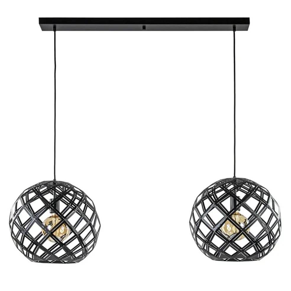 Deze metalen hanglamp geeft een Scandinavisch tintje aan het interieur. De mat zwarte hanglamp heeft, door de open structuur, een gevlochten effect wat de kap een speelse uitstraling geeft en een mooie lichtverdeling geeft. De ronde kap heeft een rechte onderkant met grote opening waardoor het makkelijk is om de lichtbron te vervangen. De bovenzijde van de kap is dicht en verloopt in het zwarte strijkijzersnoer. De lichtbronnen zijn medebepalend voor de sfeer en het karakter van deze 2-lichts hanglamp. Het is van belang om de juiste lichtbronnen uit te kiezen naar uw smaak! U kunt de keuze maken voor gold-lichtbronnen, die het geheel een warme uitstraling zal geven. U kunt ook kiezen voor een smoke-lichtbronnen, deze zullen het geheel een stoerder uiterlijk geven.