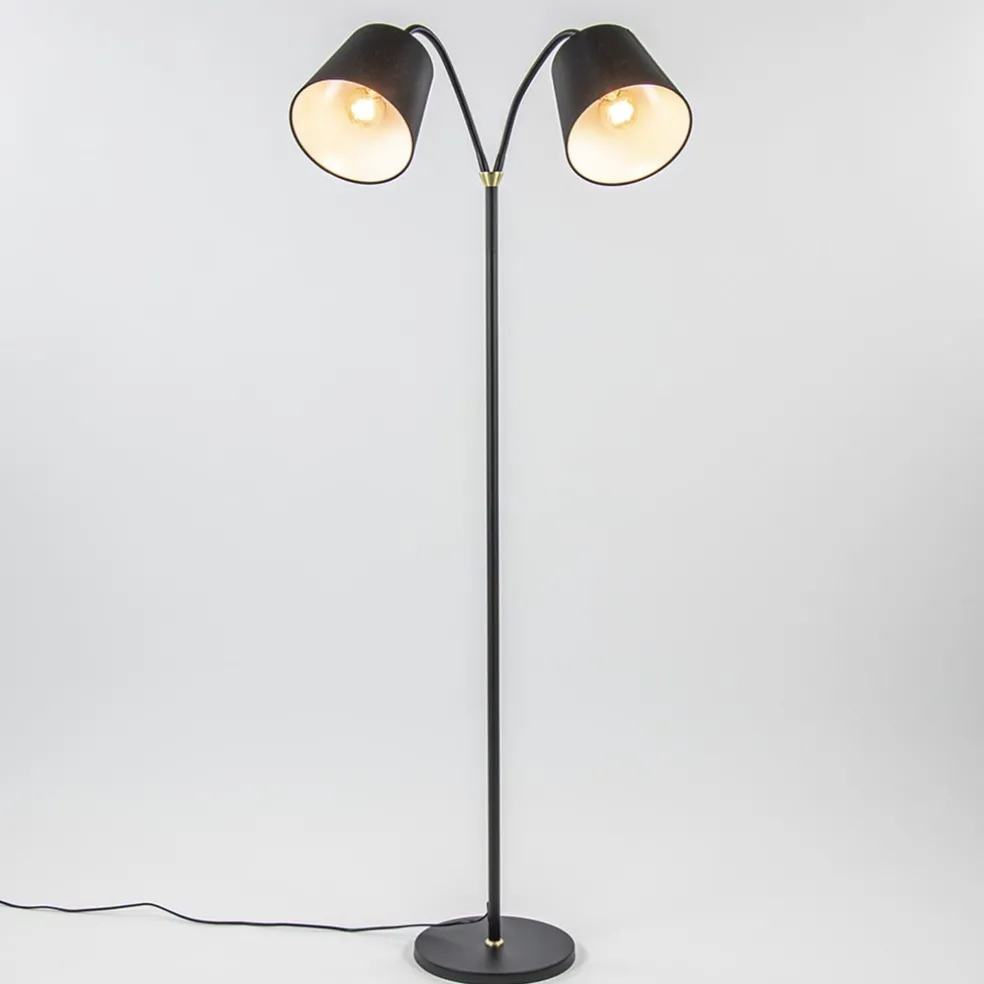 2-Lichts vloerlamp zwart/goud met flexibele armen