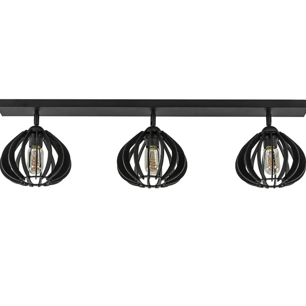 3-Lichts plafondlamp zwart met verstelbare houten kappen