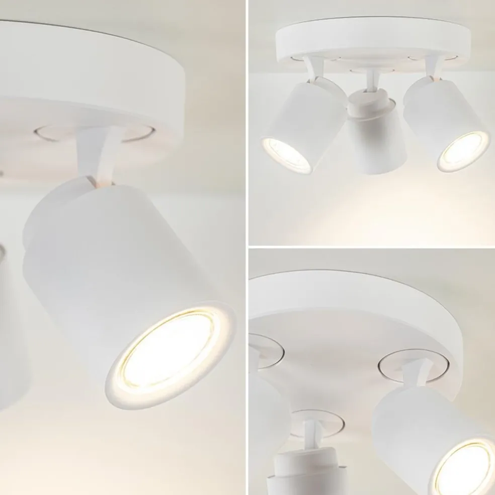 Op zoek naar een elegante plafondlamp? Dan is deze 3-lichts opbouwspot rond echt iets voor u! De witte uitvoering zorgt voor zowel een landelijke als Scandinavische toevoeging aan uw interieur. De ronde opbouwspot is verstelbaar, zo kunnen de kapjes gekanteld en gedraaid worden, zodat u uw eigen draai aan deze spots kan geven. Ideaal voor een hal of slaapkamer. De witte 3-lichts opbouwspot wordt geleverd zonder lichtbron en is dimbaar met een externe dimmer (exclusief). De lichtbron kan worden geplaatst door de volledige kap van de spot los te draaien.
