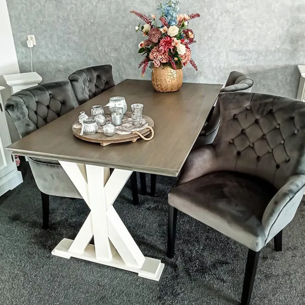 Met deze comfortabele armstoel wordt dineren een waar genot. De eetkamerstoel heeft een hoog zitcomfort en biedt door de hoge rugleuning en de armleuning veel ondersteuning. De zitting is uitgevoerd in stof in een velourse kwaliteit en is mooi gecombineerd met een zwarte houten poot. De rugleuning is aan de binnenzijde gecapitonneerd wat de stoel een chique klassieke uitstraling geeft.