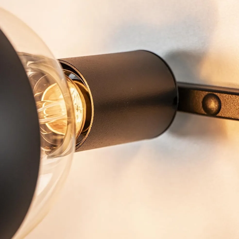 Decoratieve wandlamp zwart met 2 plantenpotten