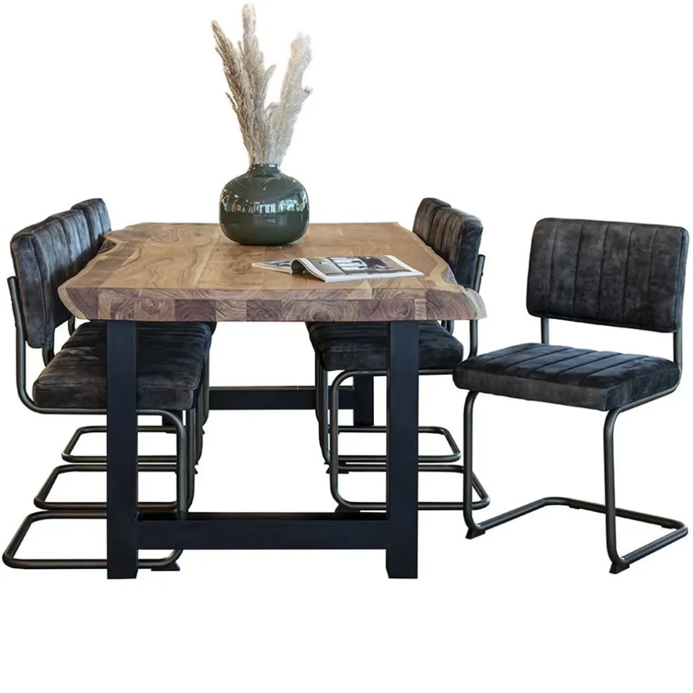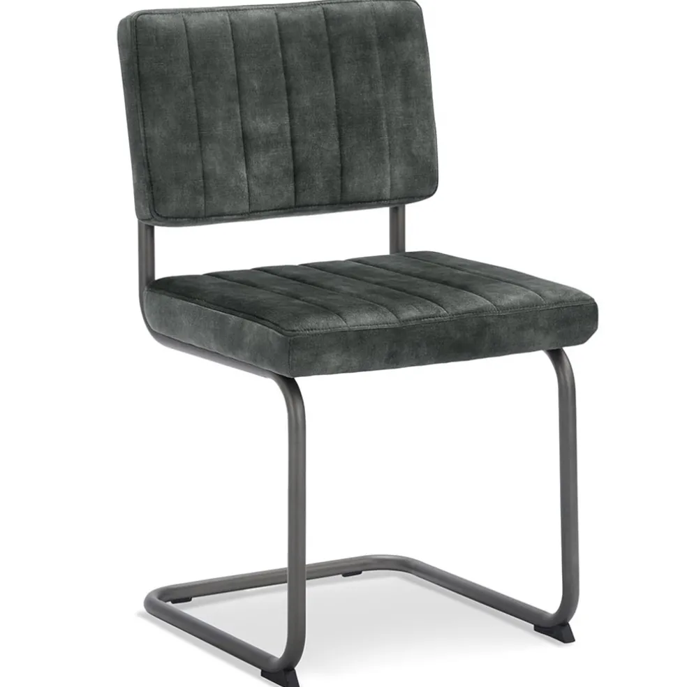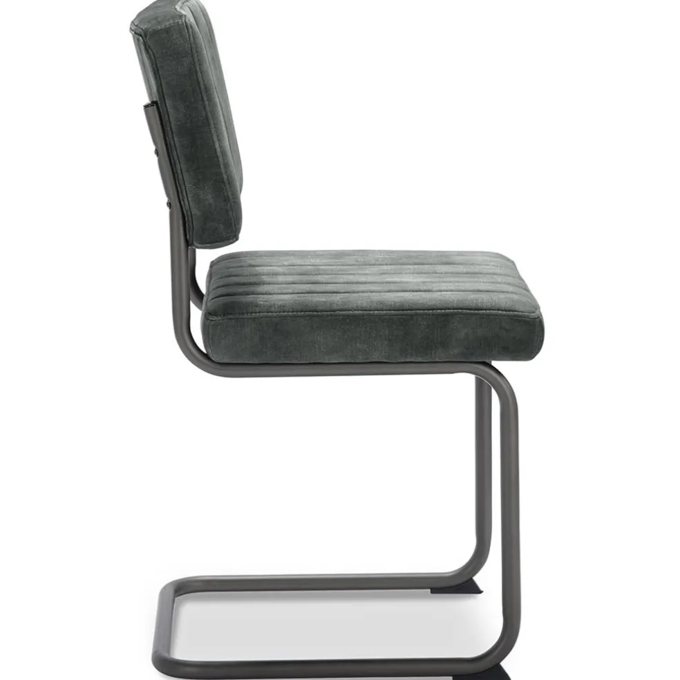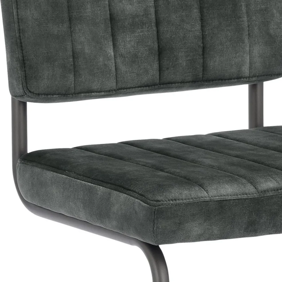 Een trendy eetkamerstoel die met meerdere mooi past bij een grote robuuste tafel. De stoel heeft een metalen frame welke is uitgevoerd in het zwart en is voorzien van een stoffen zitting en rugleuning. De stof doet velours aan en is uitgevoerd in het hunter groen. Zowel de zitting als de rugleuning zijn doorgestikt. Combineer ze in één kleur of kies juist verschillende kleuren voor een speels effect.