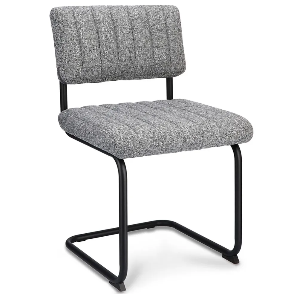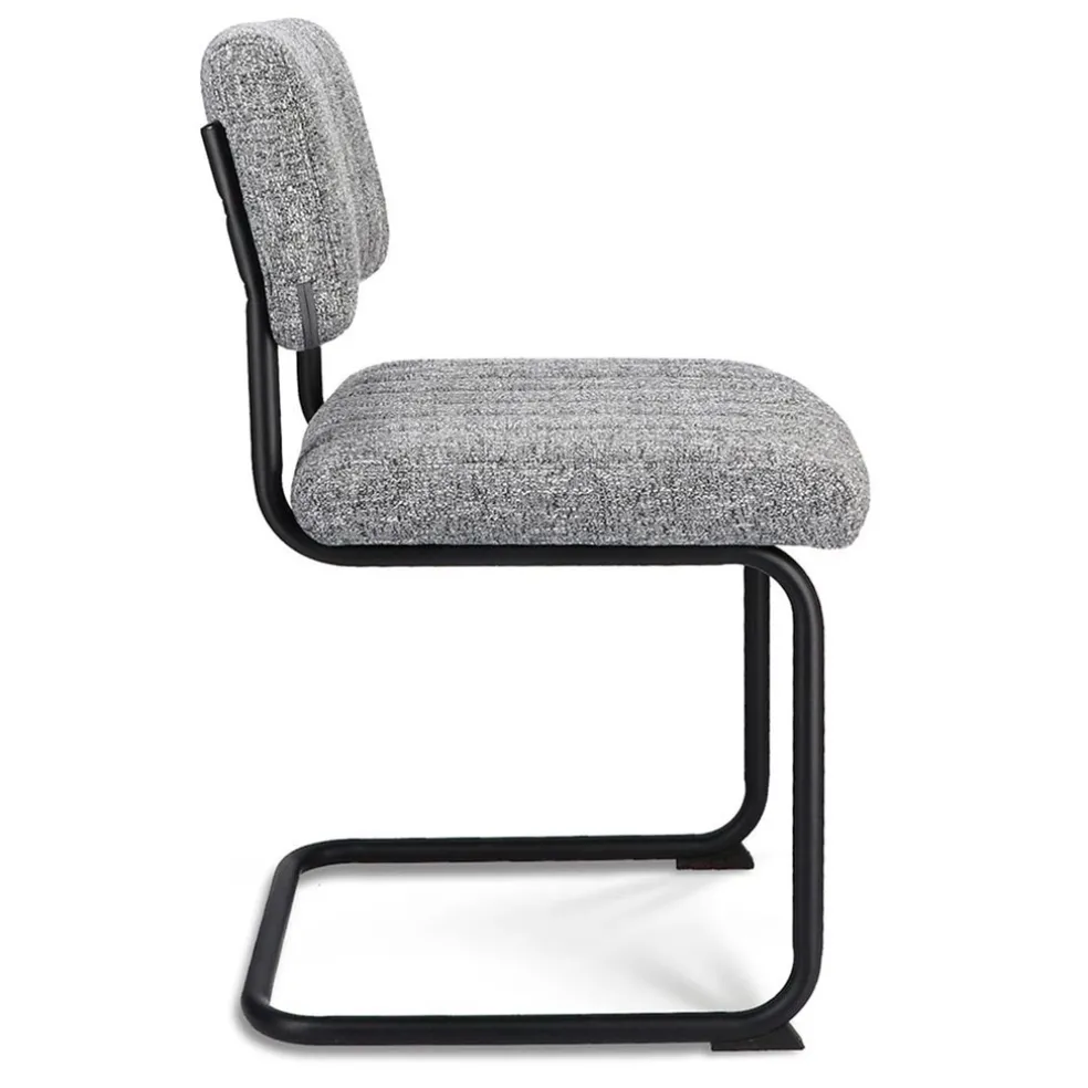 Trendy, stoer en comfortabel ineen. Deze eetkamerstoel in voorzien van een stoffen zitten en rugleuning, beide uitgevoerd in de kleur grijs. Dit is mooi gecombineerd met een stoer en stevig metalen frame. De stoel heeft een comfortabele zit en is door het gewicht van 7,25 kg gemakkelijk te verplaatsen.