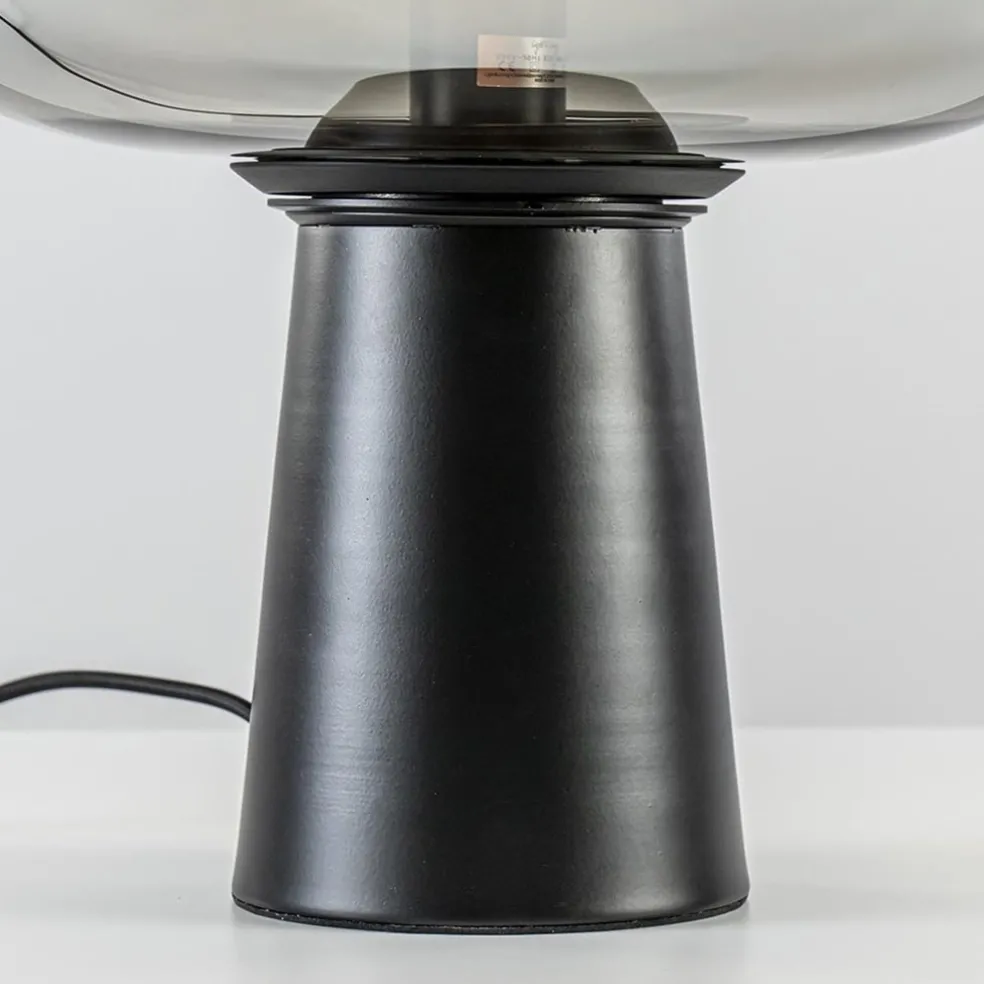 Grote tafellamp Amarah zwart met smoke glazen kap