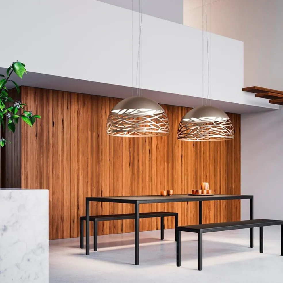 Het meest bekende model van Studio Italia Design is een hanglamp welke luistert naar de naam Kelly. Wondermooie vormgegeven lampen, met gracieuze detaillering. Deze fraaie open hanglamp is in meerdere afmetingen en kleuren leverbaar. En wel in wit, koperbrons en zwart. Het eenvoudige, maar elegant gelaserde design patroon, is vrijwel in elk interieur toe te passen. De glazen diffusor zorgt ervoor dat u niet direct in de lichtbron kan kijken en deze brengt mede zeer sfeervol licht tot stand. De hanglamp dient te worden voorzien van 4 lichtbronnen.
