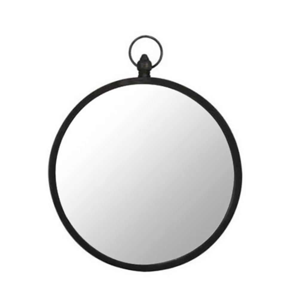 Deze stoere ronde spiegel heeft een rand gemaakt van metaal met een mooie zink afwerking. Dit geeft de spiegel een robuust uiterlijk Boven aan een knop met een ring zodat de spiegel eenvoudig op te hangen is. Prachtig in een landelijk, industrieel of stoer klassiek interieur. Bijvoorbeeld in de hal, slaapkamer of woonkamer.