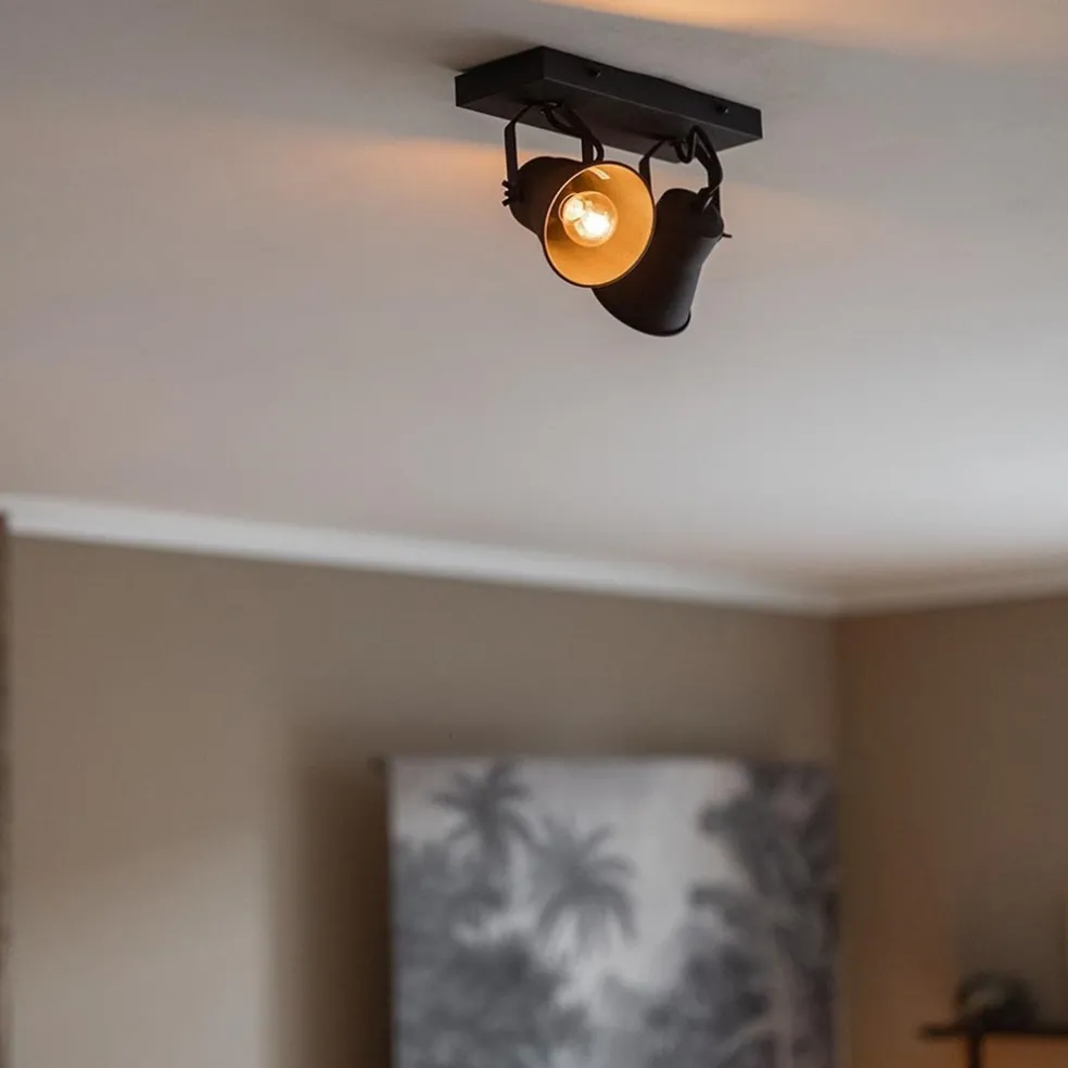 Industriële 2-lichts plafondspot mat zwart
