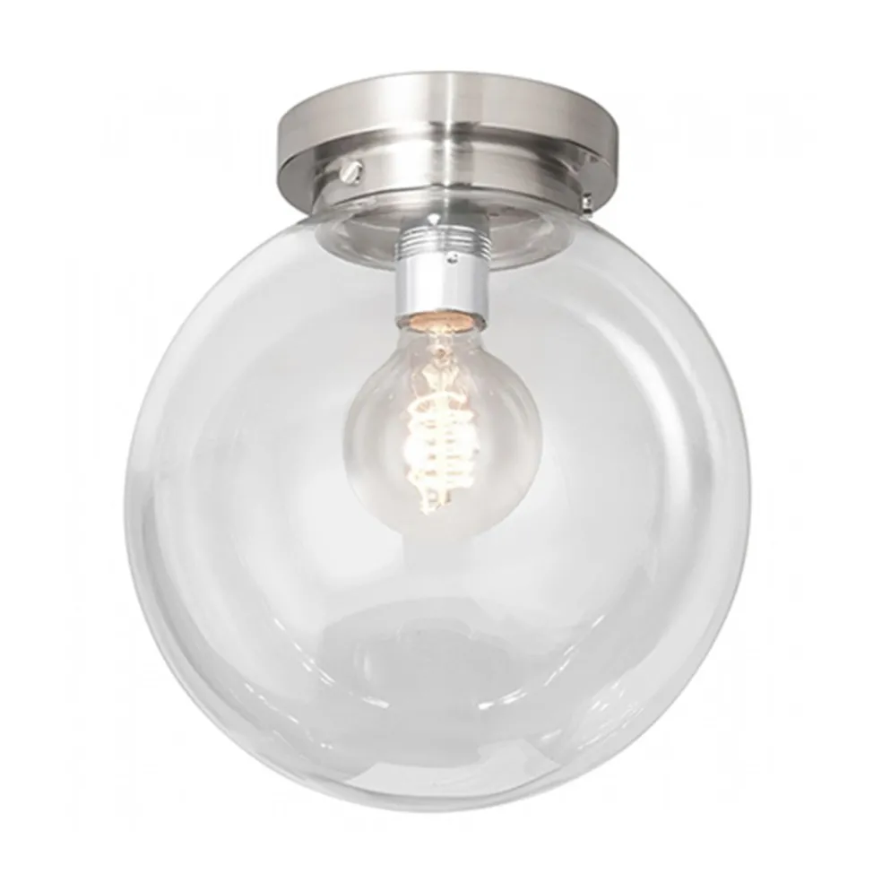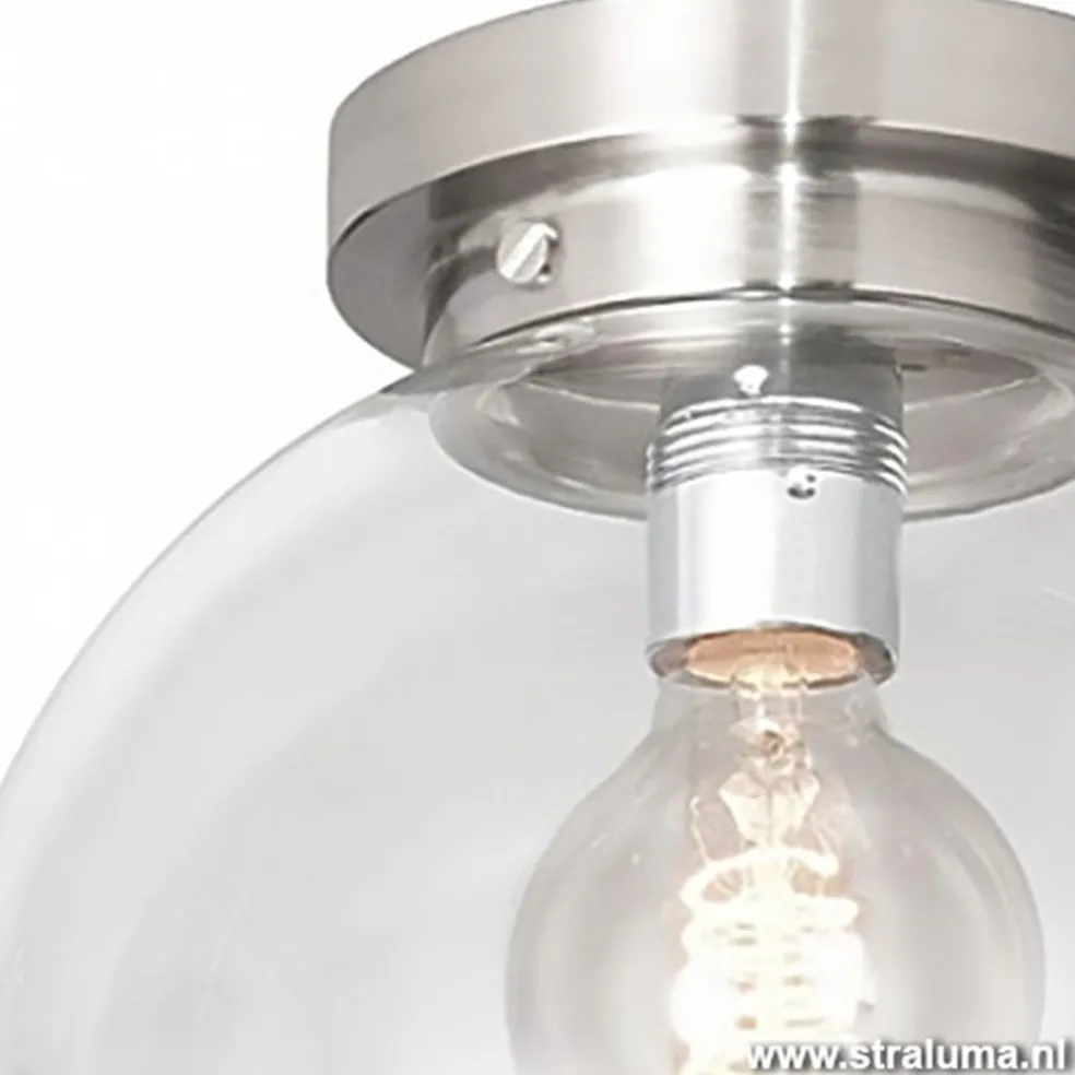 Moderne glazen plafonnière. Door het transparante glas blijft deze plafondlamp lekker licht en fris. Een leuke keuze voor een lamp als deze is een kooldraadlamp. Ideaal in de toilet, hal of slaapkamer.