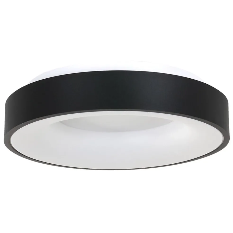 Deze moderne plafondlamp komt perfect tot z’n recht in een slaapkamer, keuken of hal. De ronde plafonnière is gemaakt van metaal en kunststof en is voorzien van geïntegreerd LED. Het LED geeft met 2700 Kelvin een sfeervolle warm witte verlichting en kan door de lichtopbrengst van 3600 lumen prima een hele kamer verlichten. De plafondlamp heeft een doorsnede van 48 cm en een hoogte van maar 9 cm, dit maakt de zwarte plafondlamp prima geschikt voor een ruimte met een laag plafond. Middels en externe dimmer (exclusief) is de moderne plafondlamp naar wens te dimmen.