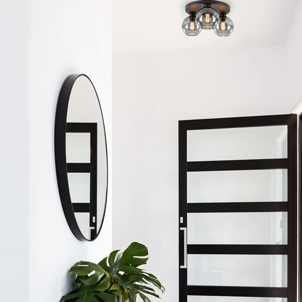 Plafondlamp 3L zwart bolglas smoke
