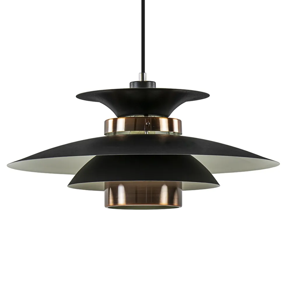 Deze stoere hanglamp heeft een retro look en feel. De ronde kap is gemaakt van metaal en uitgevoerd in het zwart met koper. De ronde kap hangt aan een zwart snoer en heeft een maximale hoogte van 145 cm en is naar wens in te korten. Door z’n grootte is de lamp mooi toe te passen in de eetkamer, woonkamer of slaapkamer. De retro hanglamp is dimbaar middels een externe dimmer (exclusief) en wordt geleverd exclusief lichtbron.