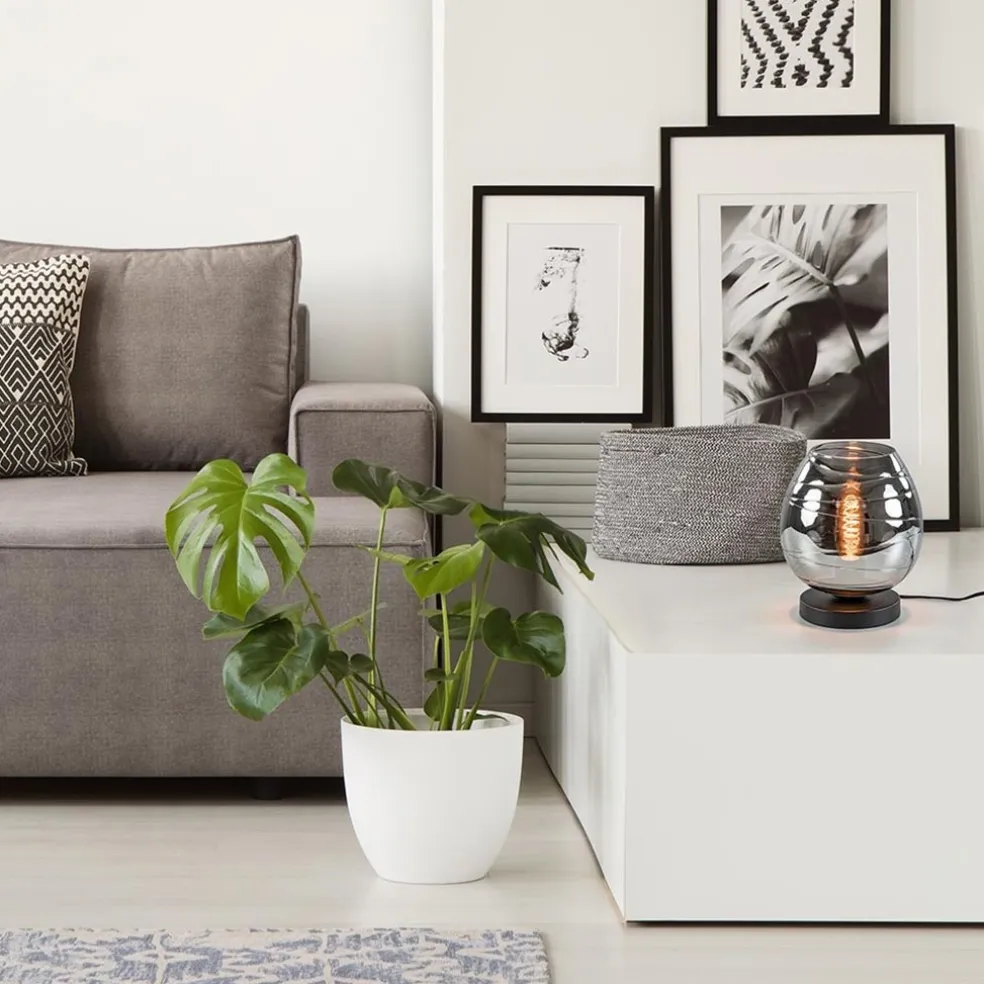U kijkt naar uw tafel en u vindt er iets op mist, maar u weet niet precies wat? Wij weten het wel, namelijk deze leuke tafellamp smokey! Het spiegelende smoke glas geeft deze tafellamp een stijlvolle en luxe uitstraling die mooi combineert in diverse woonstijlen. Hij is door zijn formaat geschikt voor op een dressoir, in een kast of op uw nachtkastje! De tafellamp is voorzien van een mat zwarte voet die mooi combineert met het titanium glas. De voet heeft een zwart snoer met een lengte van 170 cm en een knipschakelaar op 25 cm van de voet. De tafellamp smokey wordt geleverd exclusief lichtbron (E27). Deze tafellamp smokey is dé oplossing voor dat lege plekje op uw tafel!