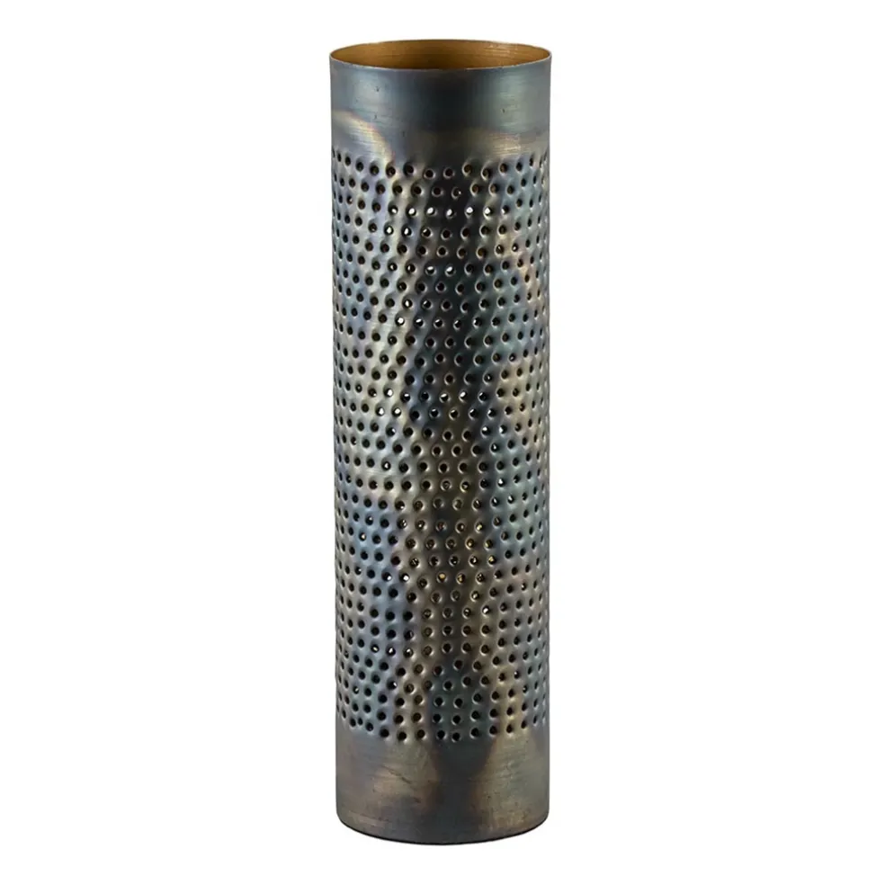 Een originele tafellamp vinden, het klinkt als een lastige opgave, maar dat is het zeker niet! Deze tafellamp gevlamd is namelijk precies wat u zoekt. Deze tafellamp heeft een hele eigen look. Waarom vraagt u zich af? De cilinder kap van deze tafellamp is gevlamd en geperforeerd, waardoor deze lamp een echt authentiek uiterlijk heeft. De binnenkant van de kap is goud gekleurd, wat de tafellamp een hele warme en sfeervolle uitstraling geeft. De metalen tafellamp is voorzien van een zwart snoer met een lengte van 190 cm en een knipschakelaar op 40 cm van de lamp. Deze gevlamde tafellamp wordt geleverd exclusief lichtbron (E27).