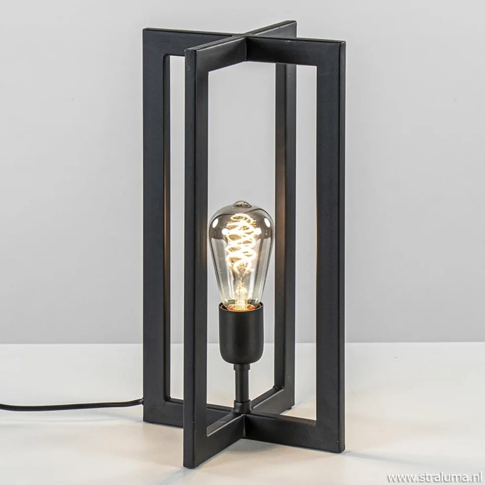 Een moderne tafellamp met een strakke vormgeving. De Mace van Light & Living bestaat uit twee frames die haaks op elkaar zijn gezet. In het midden is de lamp voorzien van een fitting. Het frame heeft een dikte van 2,5×1 cm. Mace heeft een mat zwarte finish wat het metaal een moderne look geeft. De zwart metalen tafellamp heeft een zwart snoer van 175 cm met een schakelaar op 75 cm van de lamp. Mace wordt geleverd zonder lichtbron (E27).