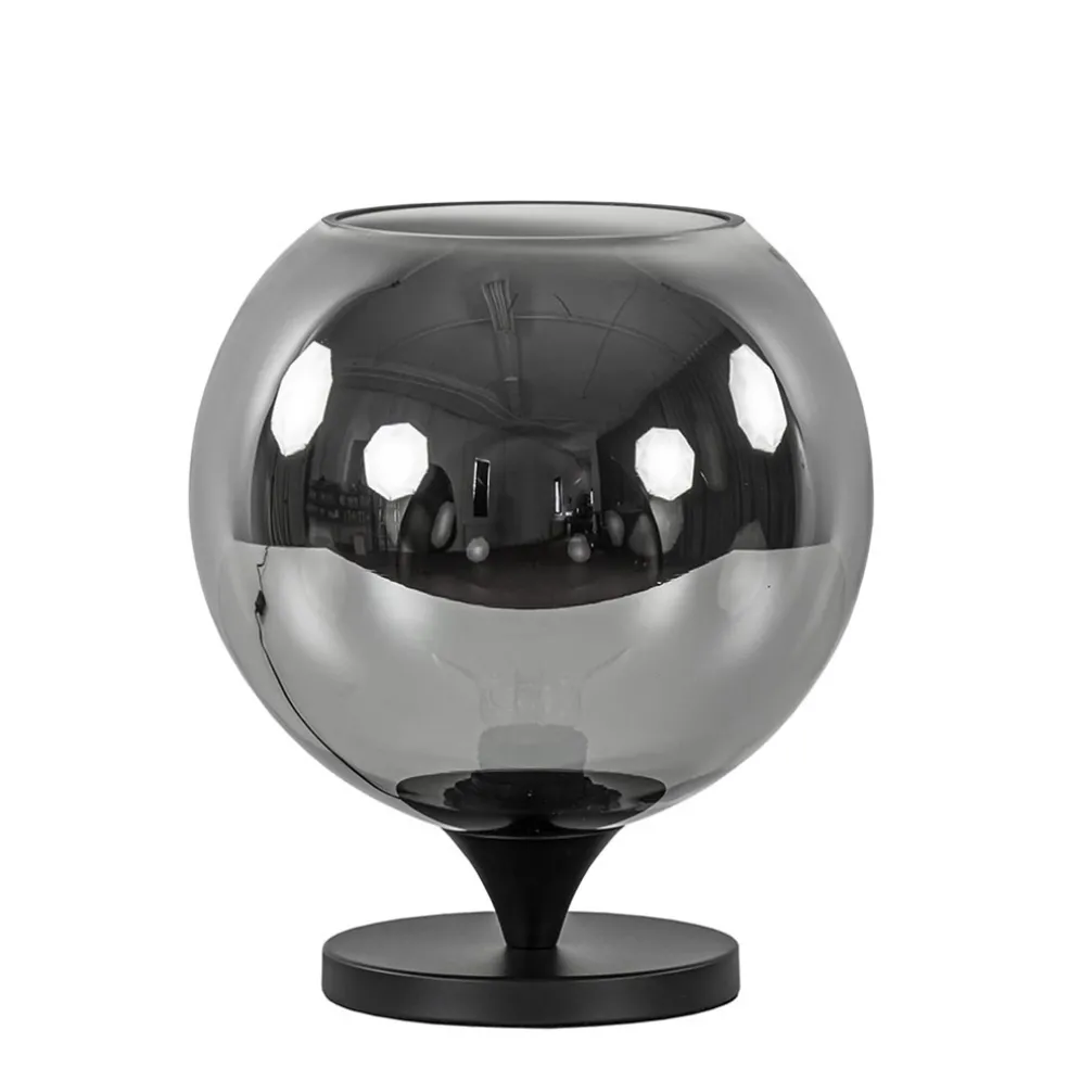 Deze tafellamp combineert stoerheid, elegantie en luxe op een perfecte manier. Het mat zwarte voetje geeft de lamp een robuuste uitstraling, terwijl het smoke glas zorgt voor een warm en sfeervol licht. Met zijn verfijnde ontwerp voegt deze lamp een vleugje elegantie toe aan elke ruimte. Of het nu op je bureau, nachtkastje of bijzettafel staat, deze tafellamp zal zeker de aandacht trekken. Geniet van de luxueuze uitstraling en het gezellige licht dat deze lamp verspreidt. Het mat zwarte voetje in combinatie met het smoke glas creëert een uniek en stijlvol effect. Voeg een warme en toch stoere touch toe aan je interieur met deze prachtige tafellamp. Deze tafellamp wordt met een snoer geleverd van 180 cm waarbij de schakelaar zich op 40 van het armatuur bevindt. Deze tafellamp komt in verschillende formaten en in twee kleuren.