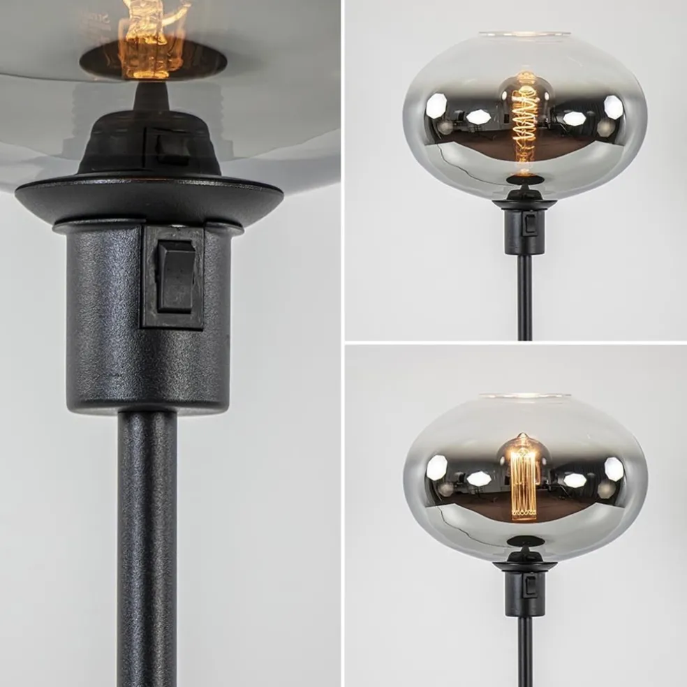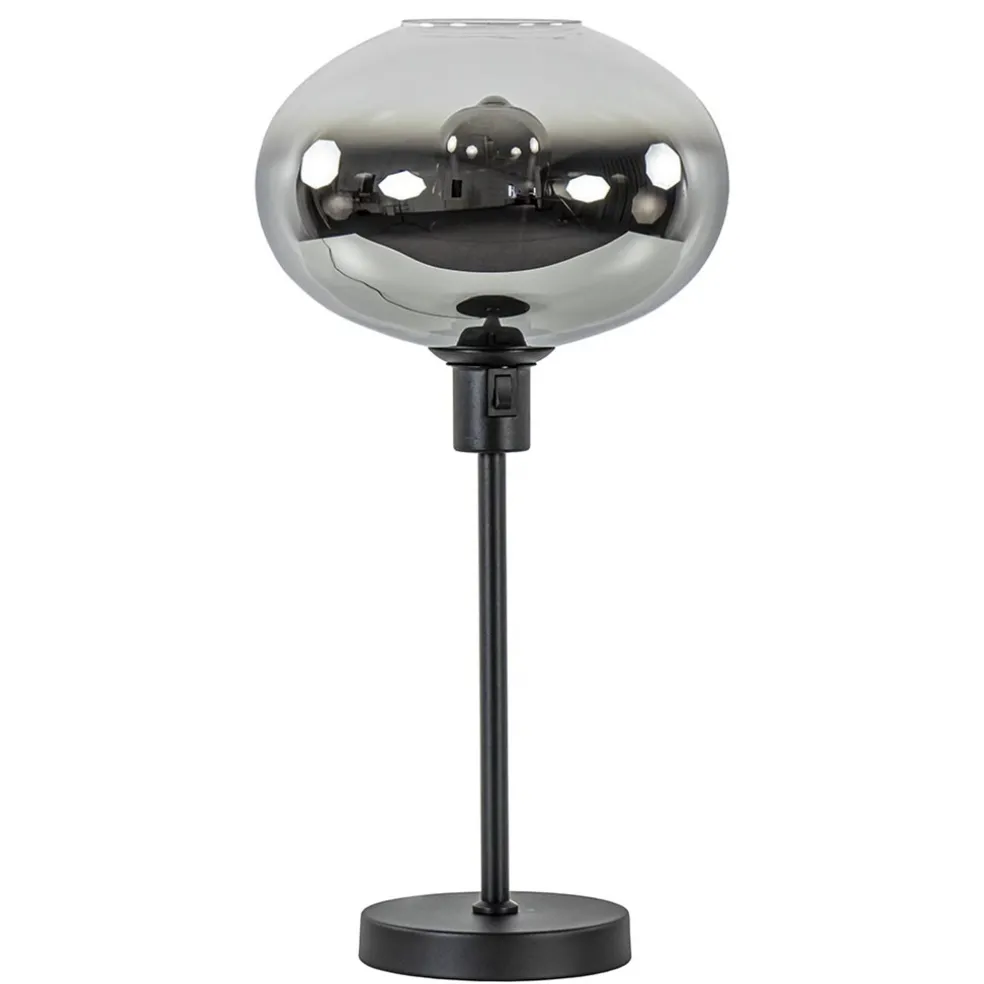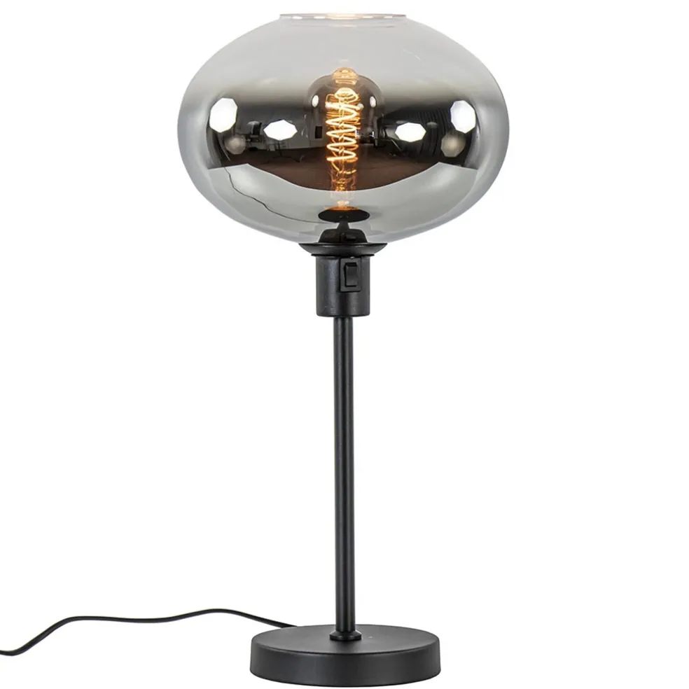 Een mooie verrijking voor een dressoir, bijzettafel of zelfs het nachtkastje. Deze trendy tafellamp voldoet helemaal aan de huidige trends en past in meerdere woonstijlen. Het armatuur is gemaakt van metaal en uitgevoerd in het mat zwart. Ideaal aan dit armatuur is dat deze is voorzien van een schakelaar op het armatuur ipv in het snoer. Zo kunt u gemakkelijk de lamp aan en uit schakelen. Het mat zwarte armatuur biedt ondersteuning aan een smoke glazen kap van 26 cm doorsnede. Het glas heeft een gradient, oftewel een verloop van smoke naar helder. Dit geeft de tafellamp een luxe chique uitstraling. De tafellamp is voorzien van een zwart snoer met en lengte van 150 cm en wordt geleverd exclusief lichtbron (E27).