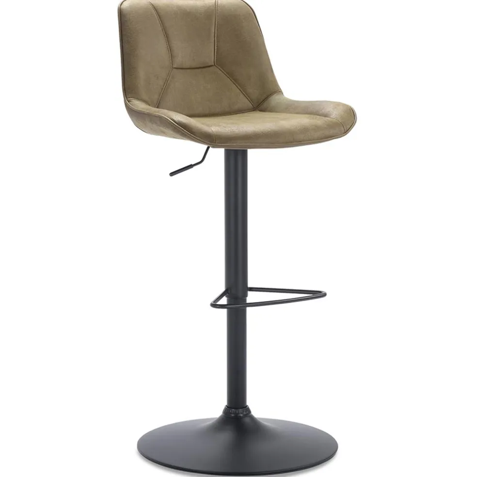 Een perfecte barkruk met een hoog zitcomfort. De barkruk heeft een industriële uitstraling en is van meerdere gemakken voorzien. Zo kan de zitting 360° draaien en is deze in hoogte verstelbaar. Ideaal om zo voor iedereen in huis passend te maken aan de bar of het kookeiland. De hoogte van de zitting is verstelbaar tussen de 60 en 80 cm. De metalen poot is uitgevoerd in het zwart en halverwege voorzien van een voetensteun voor extra comfort. De zitting is gemaakt van microleder. Dit is 60% echt leder en is uitgevoerd in de kleur mos groen. De rugleuning is voorzien van een handgreep waarmee u gemakkelijk de kruk naar achteren kunt schuiven.