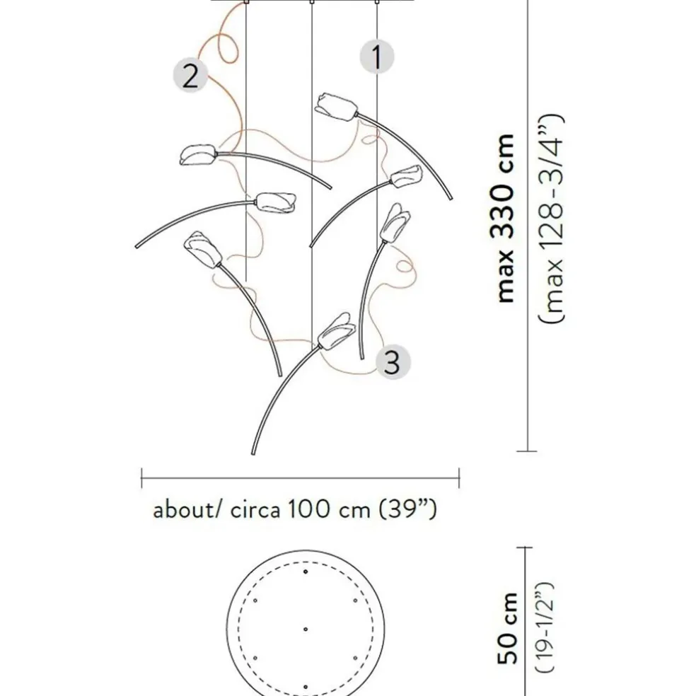 Een prachtig design met een sierlijke uitstraling. Deze 7-lichts LED hanglamp is voorzien van een brass metalen plafondplaat van 50 cm doorsnede. Over de plaat zijn evenredig 7 lichtpunten verdeeld. Aan ieder punt hangt een kap in de vorm van een tulp. In de knop van de tulp is een G4 LED lichtbron verwerkt, deze zijn inclusief. Dit zorgt voor een prachtig effect in de bloemen. De tulpen worden onderling verbonden om de stroomtoevoer door te zetten. Op deze wijze ontstaat er een prachtig ontwerp dat er van iedere kant anders uit komt te zien. De sierlijke hanglamp heeft een maximale hoogte van 330 cm wat de lamp prima geschikt maakt voor een ruimte met een hoog plafond of een vide. De LED hanglamp is dimbaar middels een externe dimmer (exclusief).