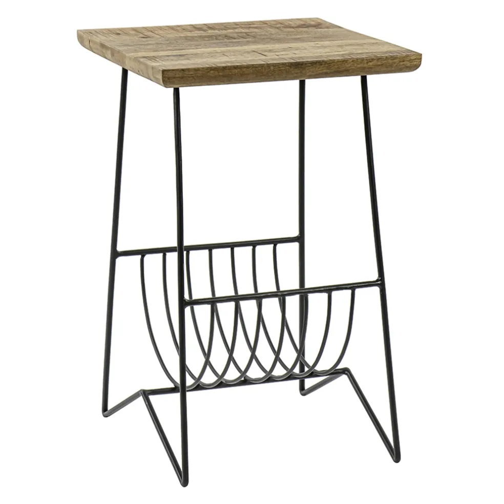 Een stoere en robuuste bijzettafel. De bijzettafel heeft een mango houten blad en een metalen frame dat is uitgevoerd in het zwart. Leuk extraatje is het tijdschriftenvak in het frame. Ideaal om je favoriete magazines in op te slaan.