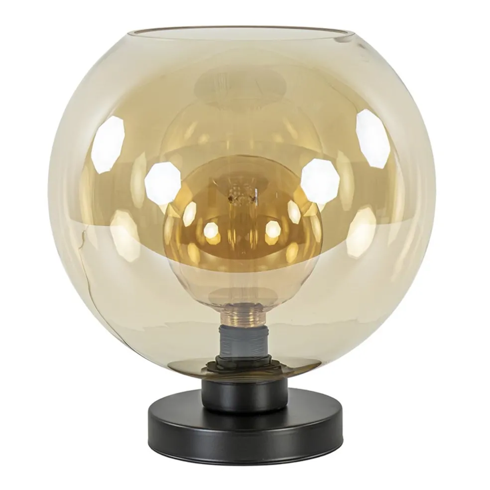 Chique tafellamp amber glazen bol 30 cm
