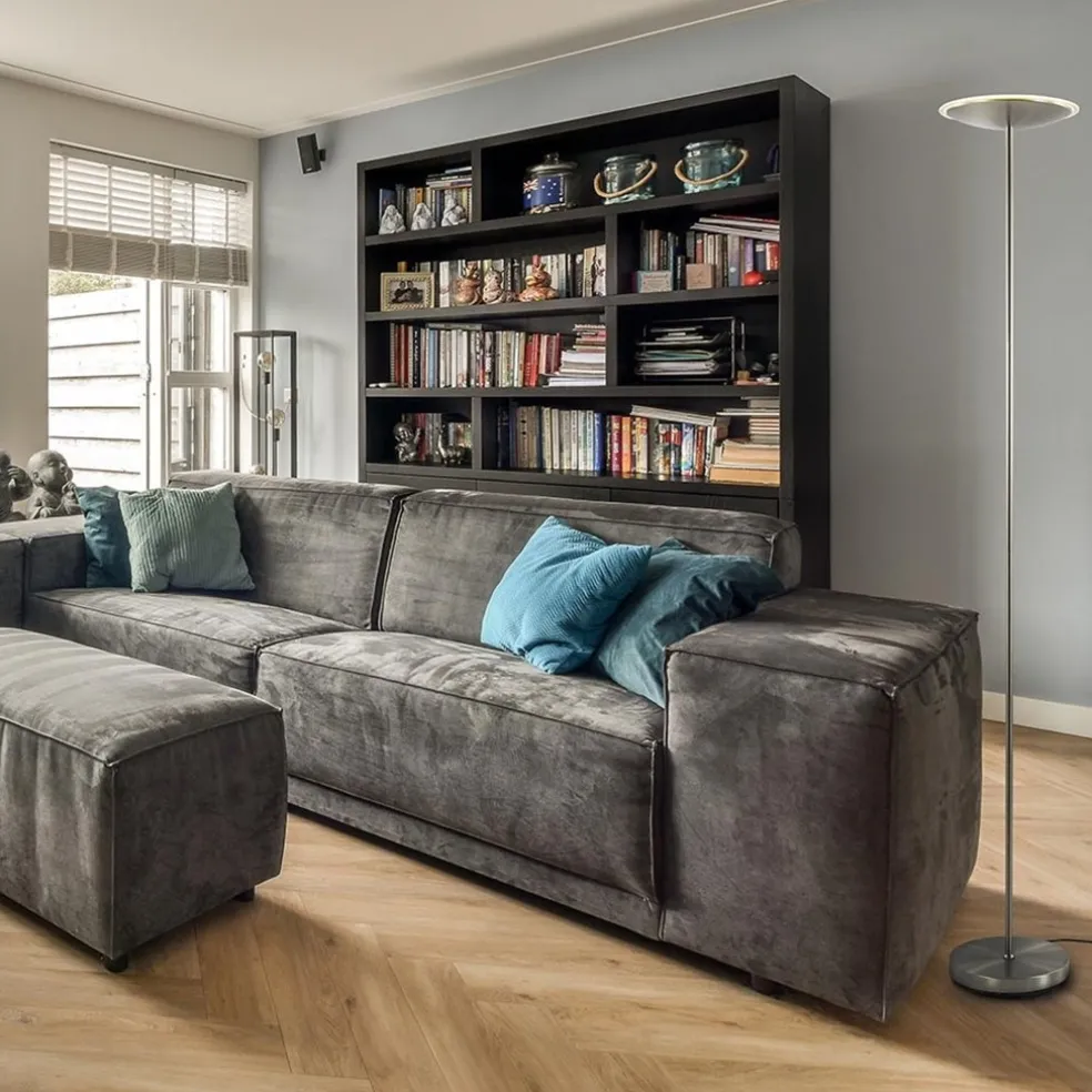 Dimbare LED uplighter vloerlamp nikkel