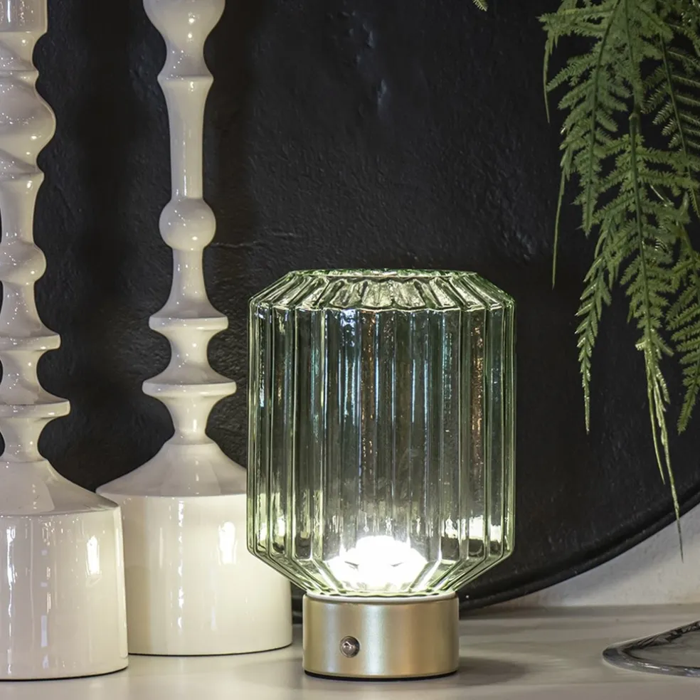 Ideaal als sfeerlicht om net even die donkere kast uit te lichten of de bijzettafel net even wat gezelliger te maken. Deze kleine tafellamp kunt u overal neerzetten waar u maar wilt. De glazen tafellamp werkt op een accu en is daardoor draadloos te gebruiken. Ook is het kleine lampje voorzien van LED met een 3-standen dimfunctie. Dit werkt gemakkelijk met de touchdimmer op de voet. Schakel gemakkelijk en snel voor de juiste sfeer. De tafellamp wordt opgeladen dmv de meegeleverde USB kabel.