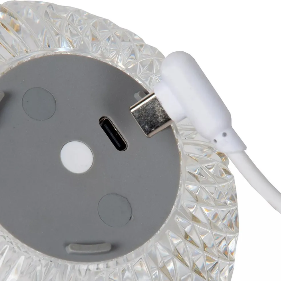 Wat een leuk lampje is dit. Prachtig van design en sfeervol in gebruik. De kleine bol is uitgevoerd in een diamant en is voorzien van LED. Wat de tafellamp extra leuk maakt is dat deze werkt op een batterij. De diamant tafellamp is dus draadloos te gebruiken en kan worden opgeladen. Wanneer de lamp volledig is opgeladen kan deze op maximaal vermogen tot wel 7 uur branden. Verder is de diamanten bol voorzien van een gouden touchdimmer aan de bovenzijde waarmee u de lamp in 3 standen kunt dimmen. Een ideale tafellamp om overal neer te zetten en extra sfeer toe te voegen aan het interieur.