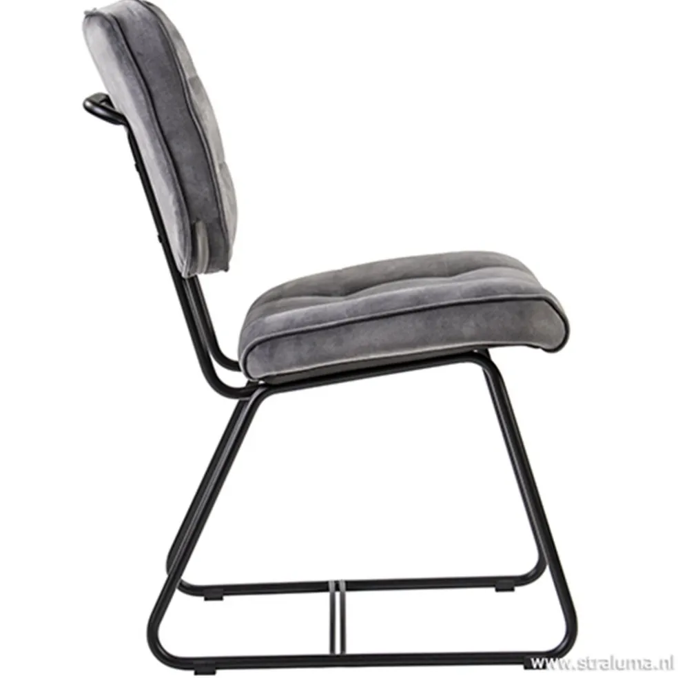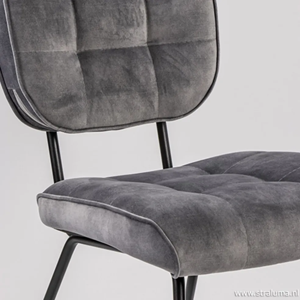 Dit trendy stoeltje past helemaal binnen de trends van nu. De strakke lijnen van de mat zwarte poten passen mooi bij een landelijk of modern interieur en de velours stoffen zitting en rugleuning geven de eetkamerstoel een luxe uitstraling. Op de rug is de stoel voorzien van een handvat zodat u de stoel gemakkelijk onder de tafel vandaan kunt schuiven. De velourse stoel heeft een hoog zitcomfort zodat tafelen en natafelen een waar genot is.