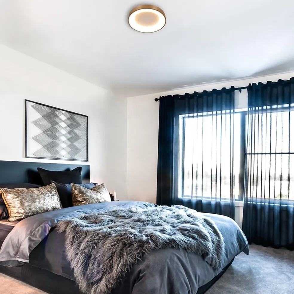 Deze moderne plafondlamp komt perfect tot z’n recht in een slaapkamer, keuken of hal. De ronde plafonnière is gemaakt van metaal en kunststof en is voorzien van geïntegreerd LED. Het LED geeft met 2700 Kelvin een sfeervolle warm witte verlichting en kan door de lichtopbrengst van 3600 lumen prima een hele kamer verlichten. De plafondlamp heeft een doorsnede van 48 cm en een hoogte van maar 9 cm, dit maakt de gouden plafondlamp prima geschikt voor een ruimte met een laag plafond. Middels en externe dimmer (exclusief) is de moderne plafondlamp naar wens te dimmen.