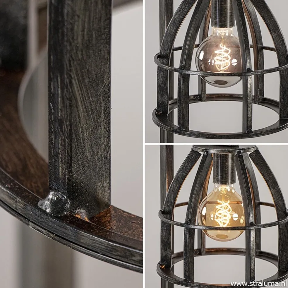 Industrieel met een landelijke touch. De metalen tafellamp heeft een grove en robuuste afwerking die terug te vinden is bij de lasnaden en de antieke finish. De matelan korf is bevestigd aan het frame die uitkomt bij de voet. De stoere tafellamp heeft een zwart snoer van 115 cm met een schakelaar op 18 cm van de lamp. Door de antieke finish past de lamp mooi in een industrieel of landelijk interieur. De lamp wordt geleverd exclusief lichtbron (E27).