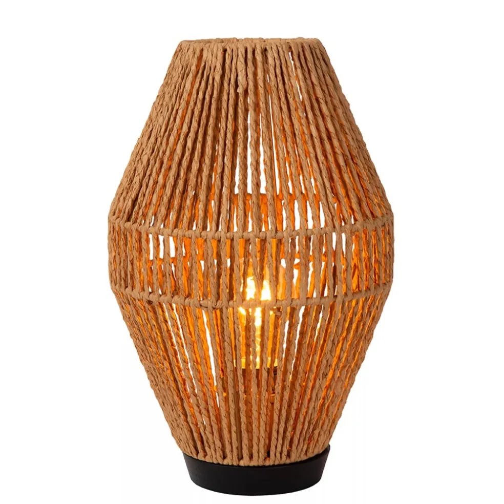 Landelijke tafellamp papier naturel met zwart