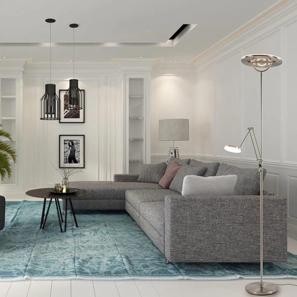 LED vloerlamp staal met uplighter en leeslamp