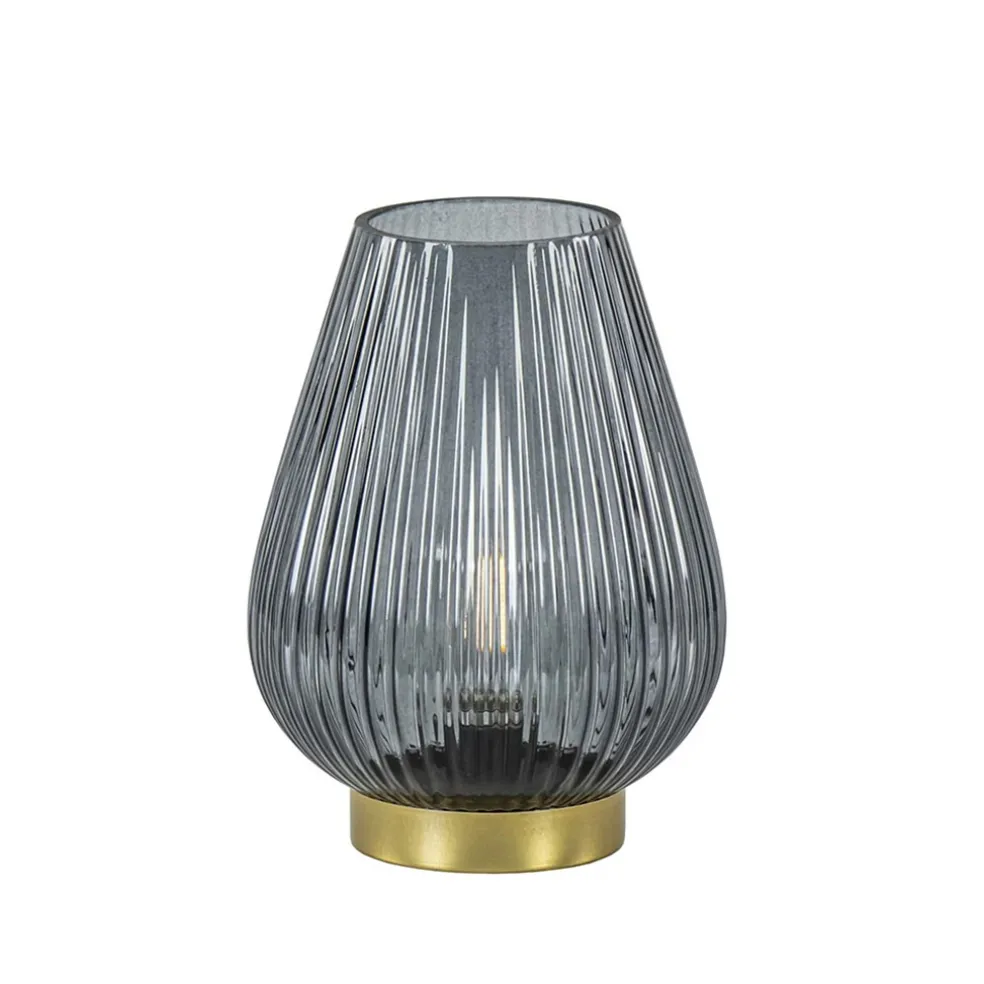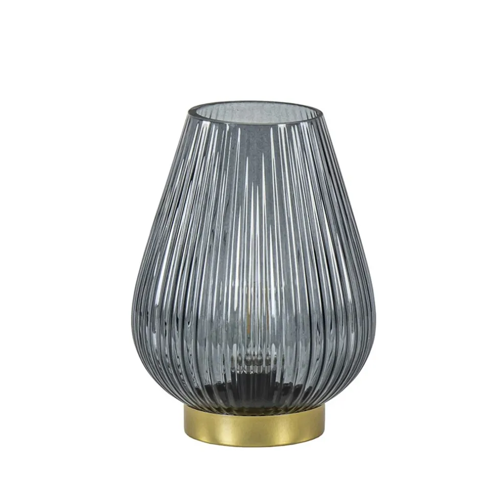 Tafellamp Tajera van Light and Living op batterijen in een glanzend grijze kleur. De leuke tafellamp heeft een goudkleurig voetje. Het druppelvormige glas geeft het lampje een sierlijk randje. Doordat het een lampje op batterijen is, is deze overal in huis neer te zetten. Het lampje wordt inclusief lichtbron geleverd.