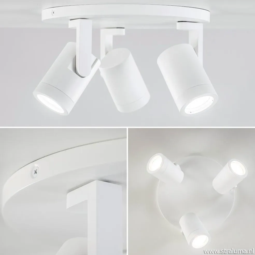Een ideale plafondspot die prima geschikt is voor diverse ruimtes. Deze metalen opbouwspot heeft een strakke afwerking en is volledig voorzien van een mat witte finish. De drie spots zijn te draaien en te kantelen zodat ze altijd naar de gewenste richting kunnen verlichten. De spotjes zijn gemakkelijk te openen door de ring eraf te draaien zodat u de lichtbron kunt plaatsen. De moderne plafondspot is dimbaar via een externe dimmer en wordt zonder lichtbron (3x GU10) geleverd.