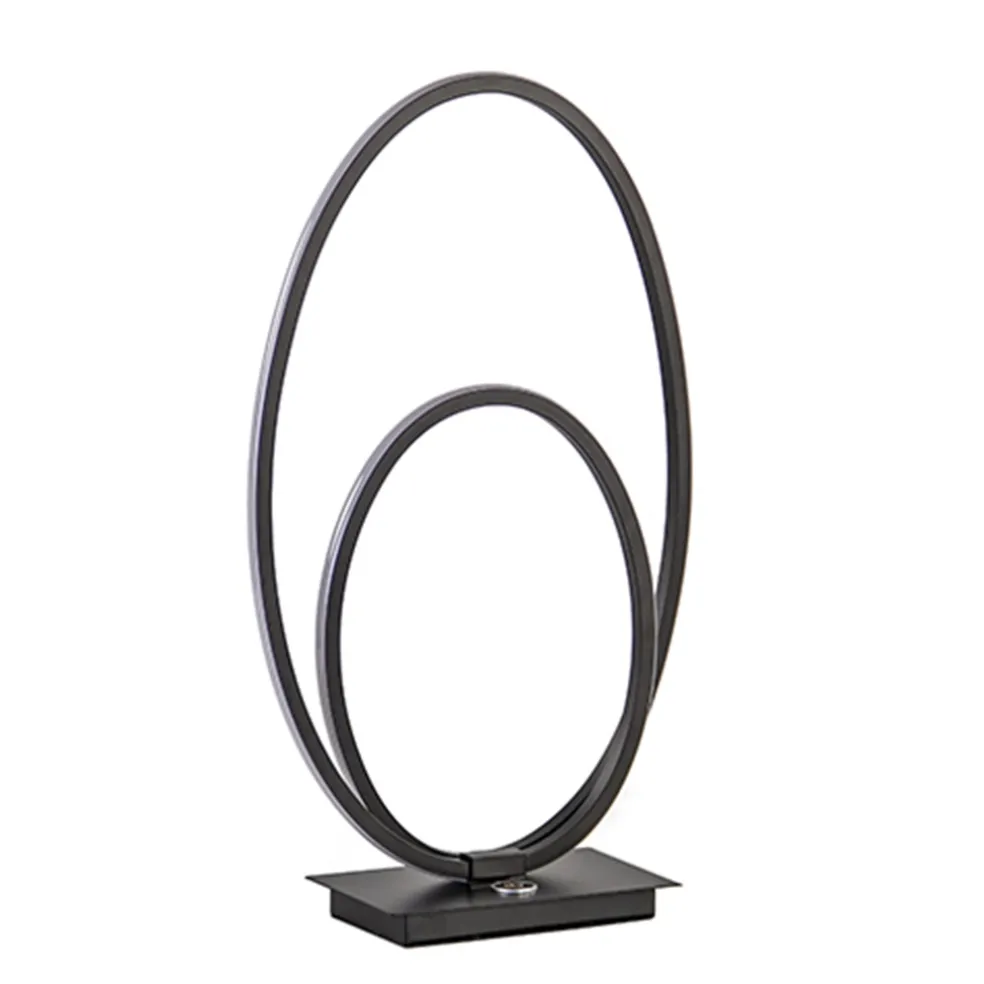 Een moderne LED tafellamp met touchdimmer. De mat zwarte tafellamp is op de voet voorzien van een touchknop die drie dimstanden kent. De bogen van de lamp zijn volledig voorzien van LED strips wat een mooie sfeervolle verlichting geeft en ook nog eens energiezuinig is. Een ideale sfeermaker met modern design!