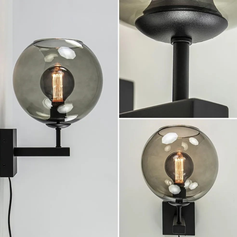 Een mooie toevoeging aan het interieur. Deze moderne wandlamp brengt sfeer en luxe in huis. De zwarte wandlamp is voorzien van een smoke glas in de vorm van een bol. Het smoke glas zorgt voor de luxe uitstraling van de lamp en wordt versterkt door de mat zwarte bevestiging. Handig aan deze wandlamp is dat deze is voorzien van een snoer, zo kunt u de lamp overal ophangen en bent u niet afhankelijk van een stroompunt. De aan/uit schakelaar bevindt zich aan de onderzijde van de wandbevestiging, zo hoeft u dus niet te zoeken naar de schakelaar op het snoer, ideaal voor bijvoorbeeld naast uw bed. De moderne wandlamp wordt geleverd zonder lichtbron (E27).