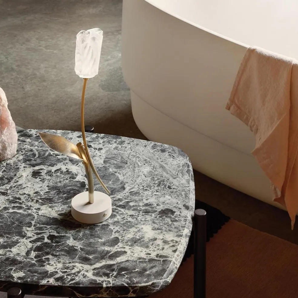 Oplaadbare LED tafellamp Tullip wit/goud