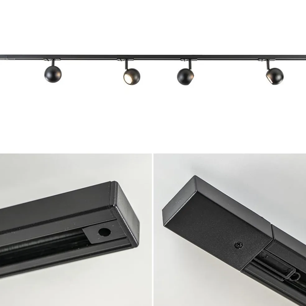 Ideaal om een ruimte extra uit te lichten of meer sfeer aan te brengen. Dit 1-fase railsysteem wordt geleverd inclusief 4 spots, beide uitgevoerd in het zwart. De rail heeft een lengte van 150 cm waar de spots gemakkelijk op kunnen worden verdeeld. Druk de spot in de rail en zet hem vast door de knop om te zetten. De spots kunnen verder nog draaien en kantelen. Bepaal dus zelf hoe u het licht wilt verspreiden. Het railsysteem heeft 1-fase, dit houdt in dat alle lampen tegelijk zullen worden in- en uitgeschakeld. Handig voor in een lange hal of slaapkamer, maar ook in de keuken of woonkamer past dit systeem perfect. De smalle rail en de ronde spots geven een strak en modern geheel aan de ruimte. Het zwarte railsysteem is dimbaar met een externe dimmer.