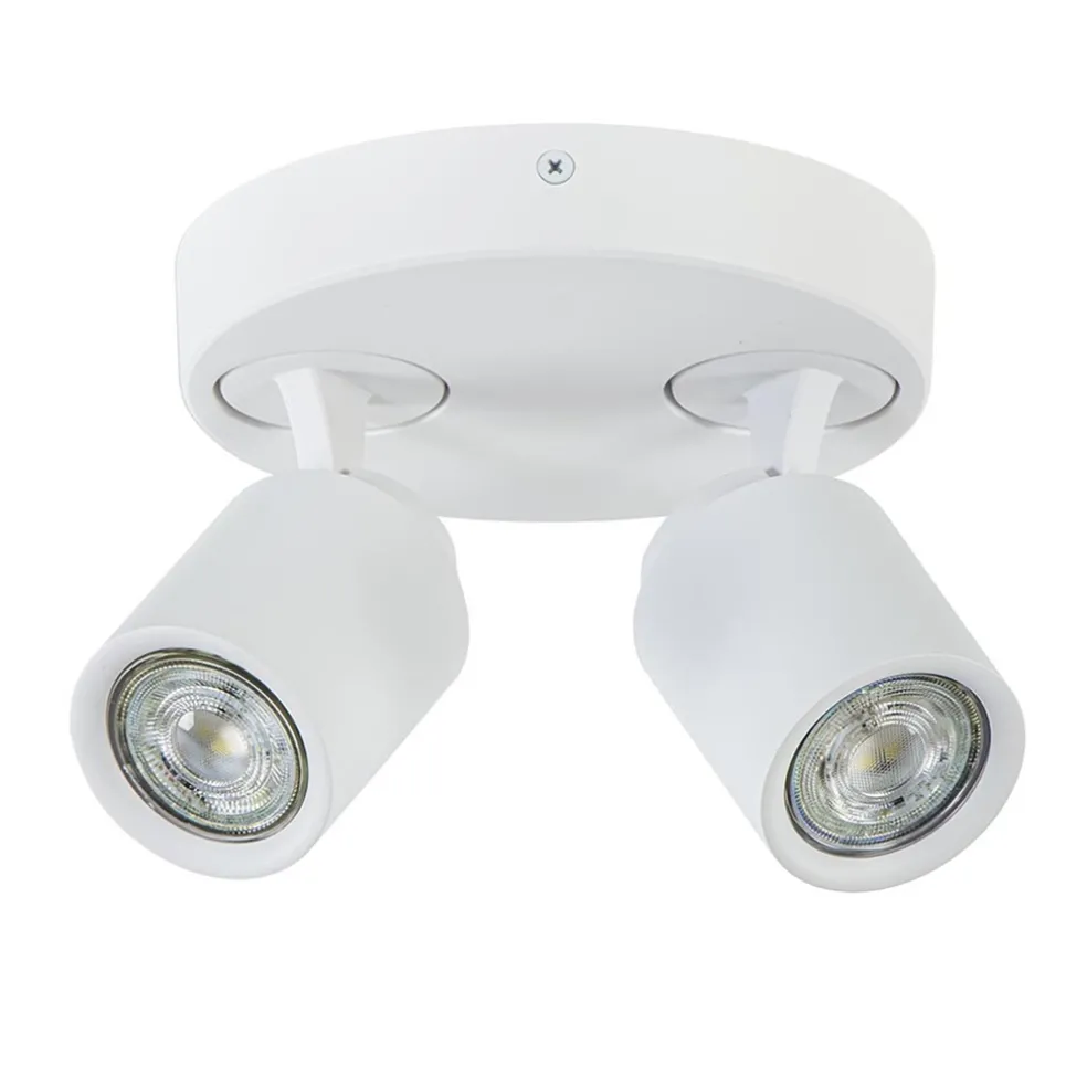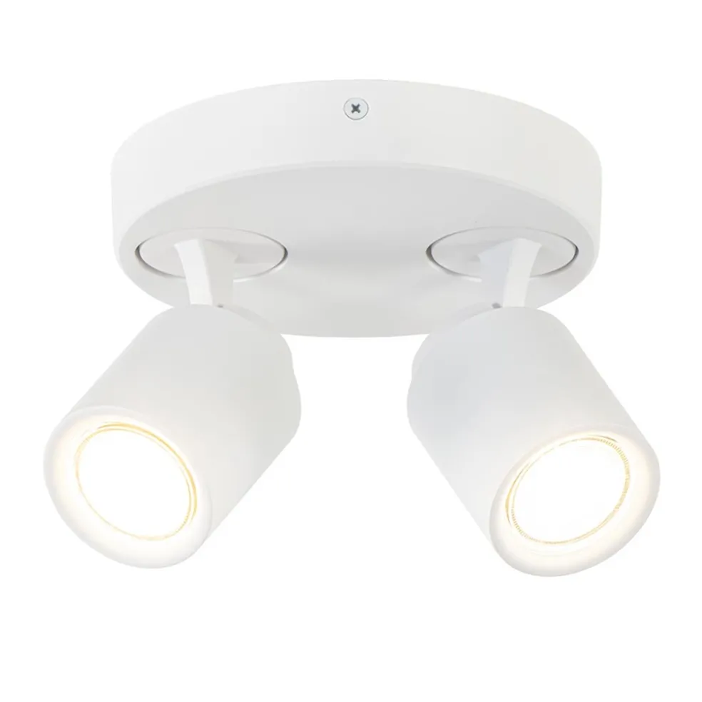 Ronde 2-lichts opbouwspot wit metaal verstelbaar