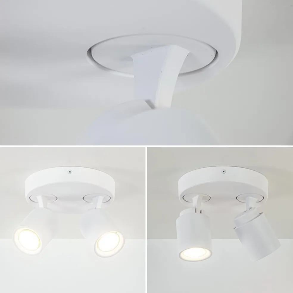 Op zoek naar een elegante plafondlamp? Dan is deze 2-lichts opbouwspot rond echt iets voor u! De witte uitvoering zorgt voor zowel een landelijke als Scandinavische toevoeging aan uw interieur. De ronde opbouwspot is verstelbaar, zo kunnen de kapjes gekanteld en gedraaid worden, zodat u uw eigen draai aan deze spots kan geven. Ideaal voor een hal of slaapkamer. De witte 2-lichts opbouwspot wordt geleverd zonder lichtbron en is dimbaar met een externe dimmer (exclusief). De lichtbron kan worden geplaatst door de volledige kap van de spot los te draaien.