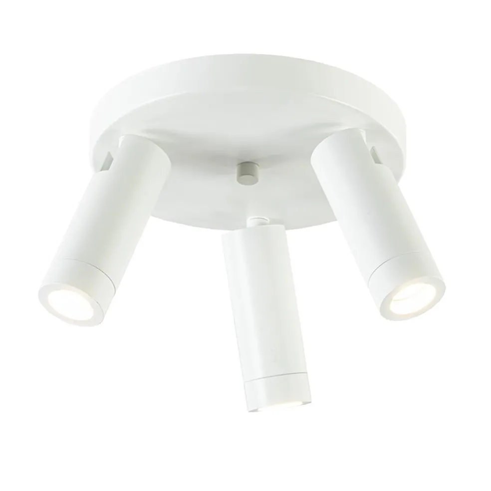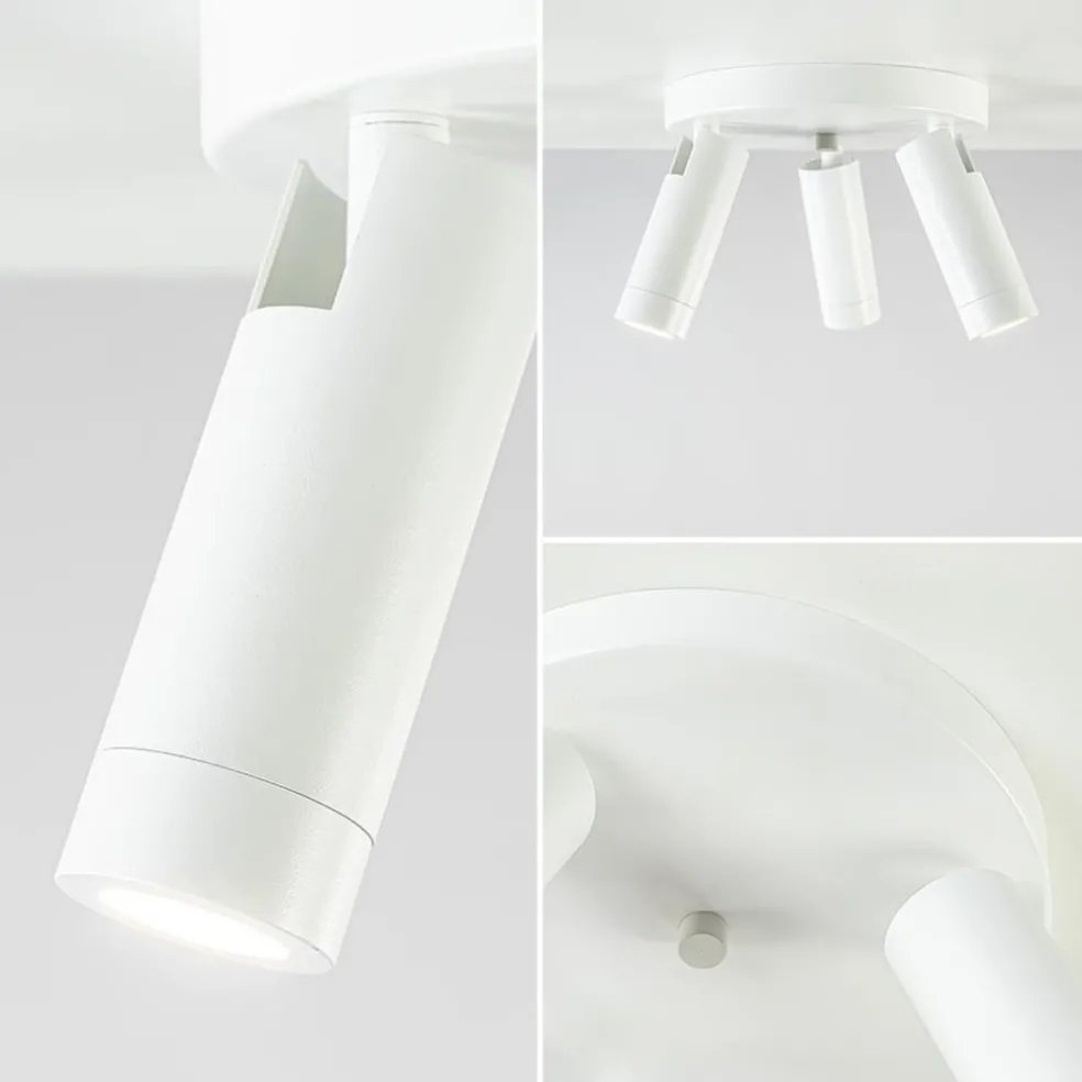 Een moderne ronde 3-lichts plafondspot met strakke vormgeving. Deze 3-lichts plafondspot is gemaakt van mat wit metaal. De spotjes zijn los van elkaar verstelbaar. Ideaal om meerdere aspecten van een ruimte tegelijk uit te lichten. De lamp past goed in een hal of de slaapkamer. Het leuke aan deze spot is dat hij wordt geleverd met zowel een mat witte als een goudkleurige fitting ring. U kunt er zelfs voor kiezen de fitting ring weg te laten en de 2-lichts spot af te maken met grotere lichtbronnen. Zo kiest u zelf welke look u wilt.
