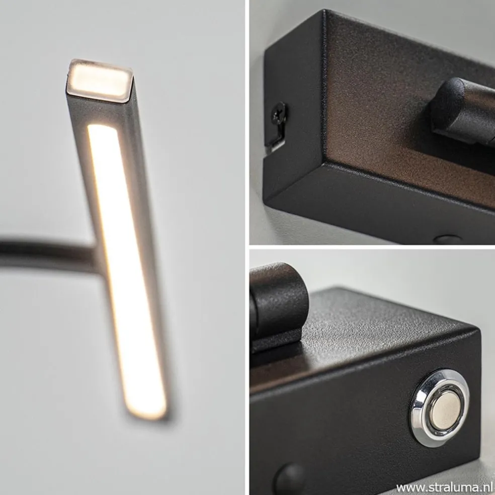 De perfecte wandlamp voor het uitlichten van een schilderij of foto. De moderne schilderijverlichting heeft een strak en minimalistisch design en wordt gemakkelijk op de wand gemonteerd. Ideaal aan de LED lamp, is dat wanneer deze niet direct op een stroompunt kan worden aangesloten, de bevestiging is voorzien van een gat aan de onderzijde zodat er aan snoer aan kan worden gezet. Wordt het gat niet gebruikt, dan is deze netjes afgewerkt met een zwart dopje. Naast deze aansluiting bevindt zich ook de touchdimmer. Met een druk op de knop gaat de lamp aan of uit, houdt u uw vinger langer op de knop, dan dimt de lamp net zo lang tot u weer loslaat. Het mat zwarte armatuur is te kantelen zodat deze de juiste belichting boven een schilderij of foto kan geven. De moderne wandlamp kan ook prima dienen als bedlampje boven het hoofdbord.