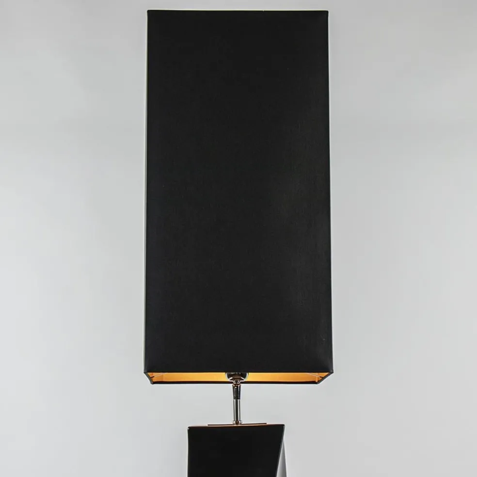 Deze chique en stijlvolle vloerlamp maakt het interieur helemaal af. Passend in diverse woonstijlen is de lamp een mooie eyecatcher. Het gedraaide effect in de voet geeft de staande lamp een speelse en tegelijk luxe uitstraling die compleet wordt gemaakt door de zwarte hoge kap. De binnenzijde van de kap is goud voor een extra glamoureuse look. De voet van de lamp is gemaakt van keramiek en mat zwart afgewerkt. De schemerlamp is voorzien van een transparant snoer met een lengte van 180 cm en een schakelaar op 60 cm. De lichtbron is exclusief.