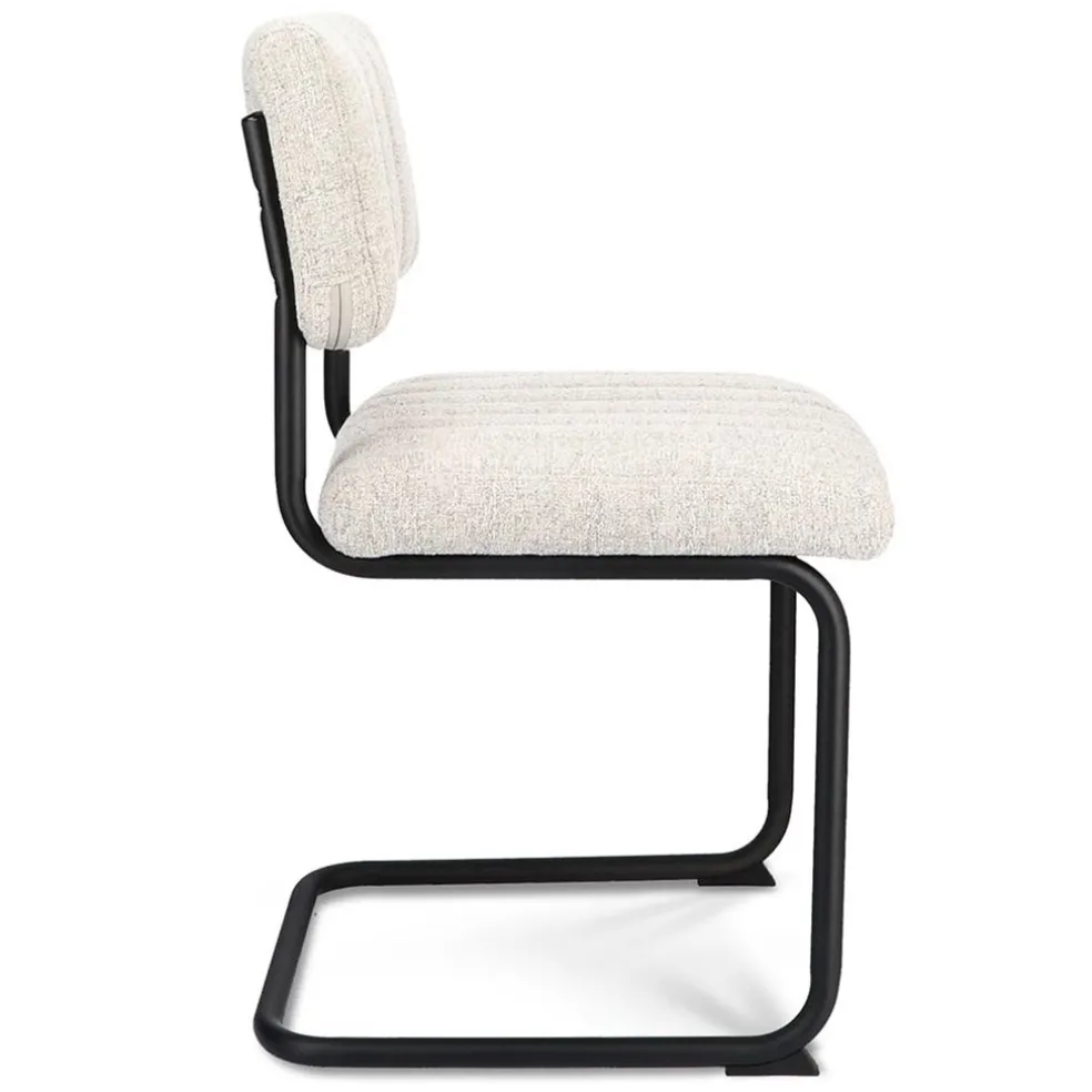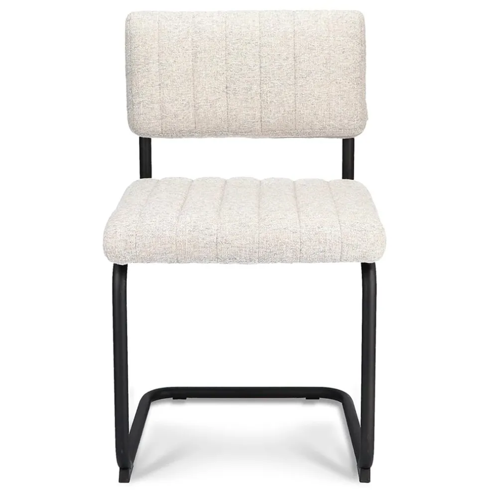 Trendy, stoer en comfortabel ineen. Deze eetkamerstoel in voorzien van een stoffen zitten en rugleuning, beide uitgevoerd in de kleur shell, dit is een lichte gemêleerde kleur grijs. Dit is mooi gecombineerd met een stoer en stevig metalen frame. De stoel heeft een comfortabele zit en is door het gewicht van 7,25 kg gemakkelijk te verplaatsen.