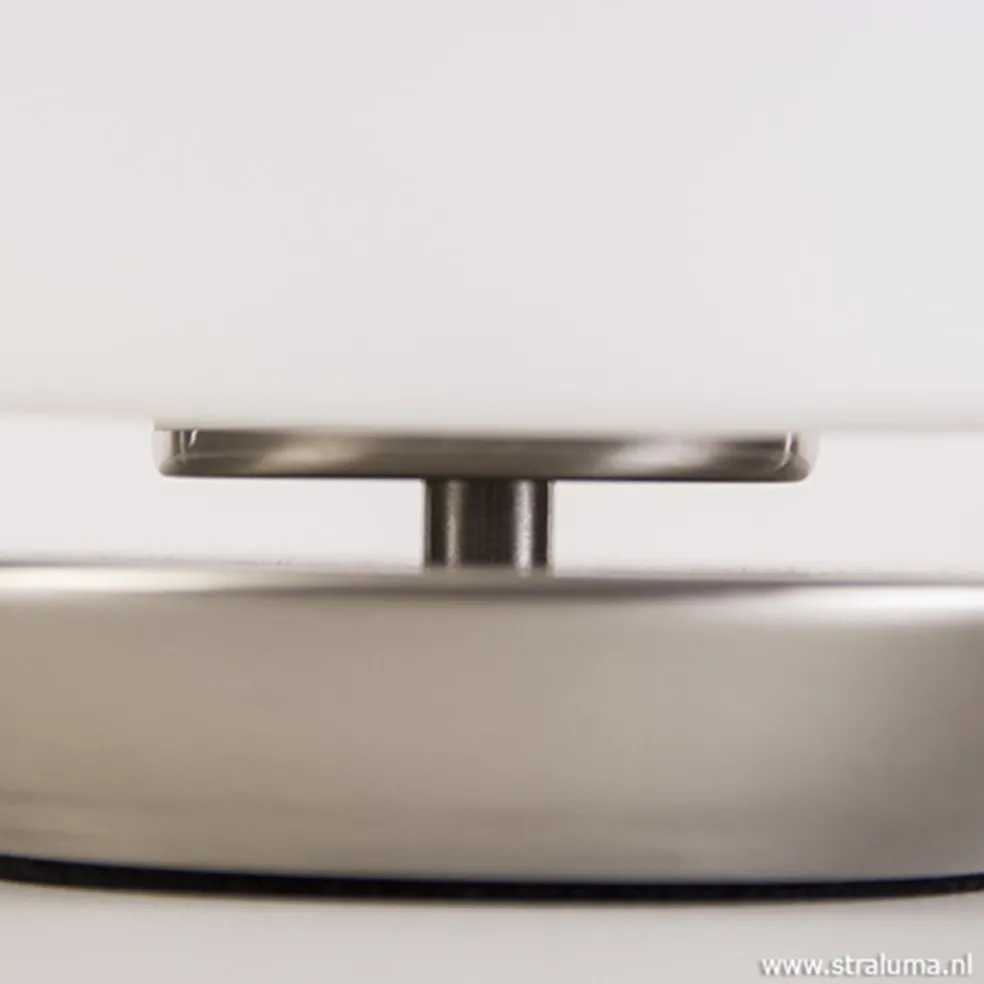 Tafellamp Ancilla LED met een staalkleurige voet en wit glas. Voordeel van deze voet is dat het gelijk een touchdimmer is. De stalen tafellamp gaat aan zodra je de voet aanraakt en kent vier dimstanden. Dit maakt de lamp ideaal voor in de slaapkamer op het nachtkastje, maar is ook prima te combineren in de woonkamer of op het bureau. De tafellamp is voorzien van een LED lichtbron met een G9 fitting. Deze lamp is met een stalen en een bronzen voet verkrijgbaar.