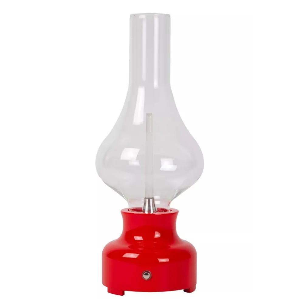 Grappige retro tafellamp in een modern jasje. Deze leuke tafellamp heeft de vorm van een ouderwetse olielamp. De tafellamp heeft een accu die oplaadbaar is met de bijgeleverde kabel. Hierdoor is de handige lamp overal neer te zetten. De tafellamp is in 3 standen te dimmen met touchdimmer op het armatuur. Deze leukerd is verkrijgbaar in verschillende kleuren.