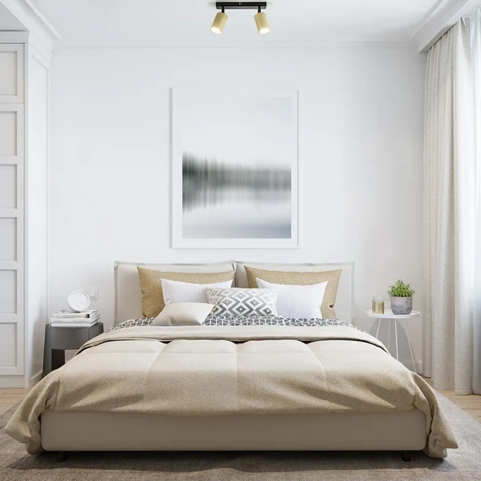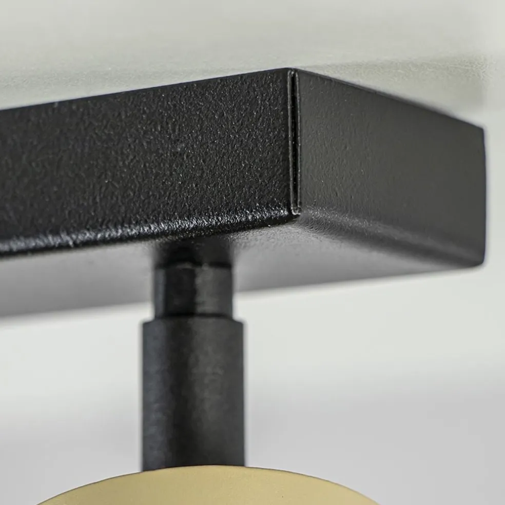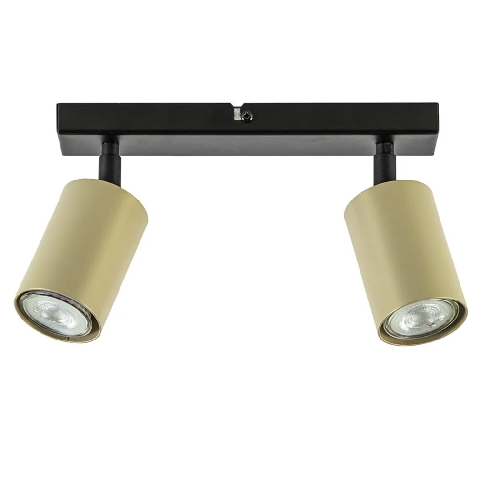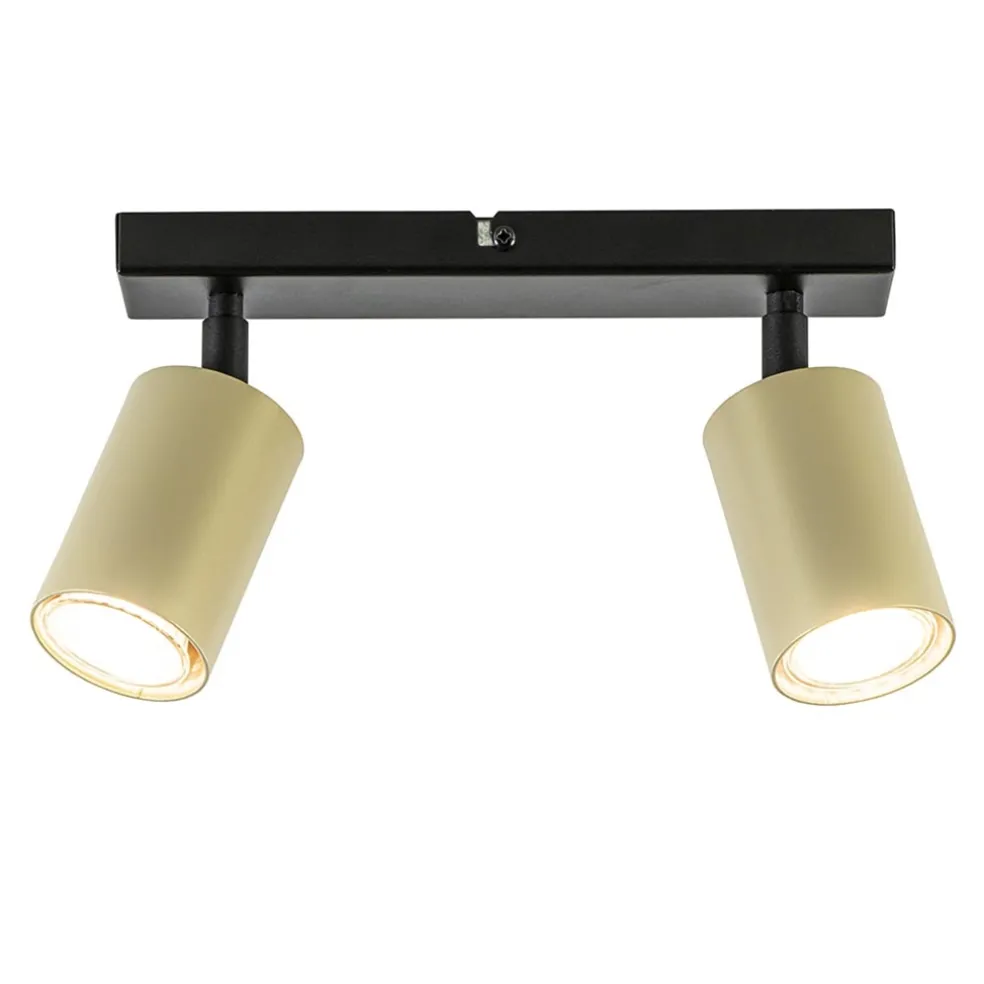 Prima geschikt voor een kleine kamer, hal of overloop. Deze 2-lichts opbouwspot zorgt voor genoeg licht een in wat kleinere ruimte. De plafondspot is gemaakt van metaal en uitgevoerd in het mat zwart met goud. De cilinder vormige spots zijn naar wens te verstellen door deze te draaien en/of kantelen. Ideaal om naar twee kanten te verlichten. De gouden spots zijn bevestigd op een kleine plafondbalk van 25 cm die in het mat zwart is afgewerkt. De 2-lichts opbouwspot is dimbaar dmv een externe dimmer (exclusief) en wordt geleverd zonder lichtbron (2x GU10).