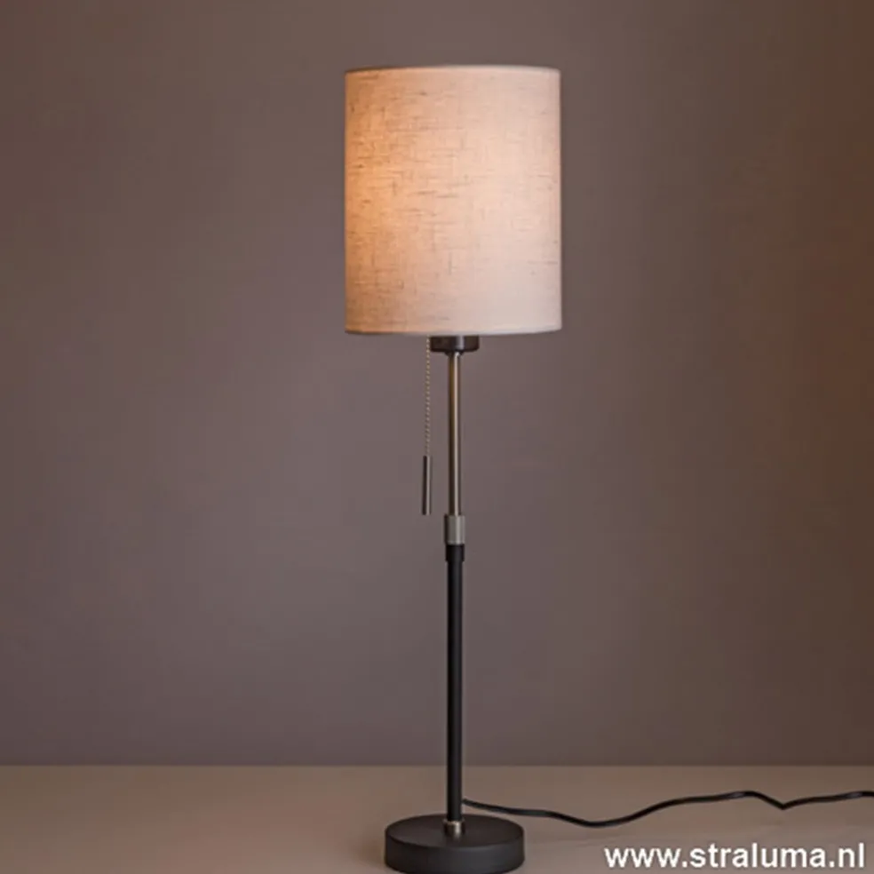 Wat een mooie nieuwe aanwinst voor de serie ‘Corona’. Een frisse verschijning deze tafellamp in zwart, staal en licht stoffen kap. Leuk is de mogeljkheid dat de Corona tafellamp in hoogte te verstellen is. Ideaal voor op een bijzettafel, nachtkastje of dressoir. Zo kunt u de zwarte tafellamp in formaat mooi aanpassen aan het meubel waar hij op staat. De linnen kap van deze schemerlamp is niet spierwit, maar net van het wit af.